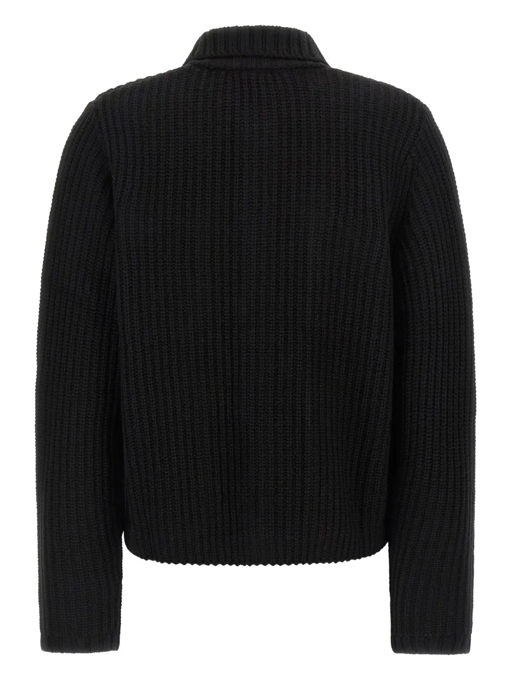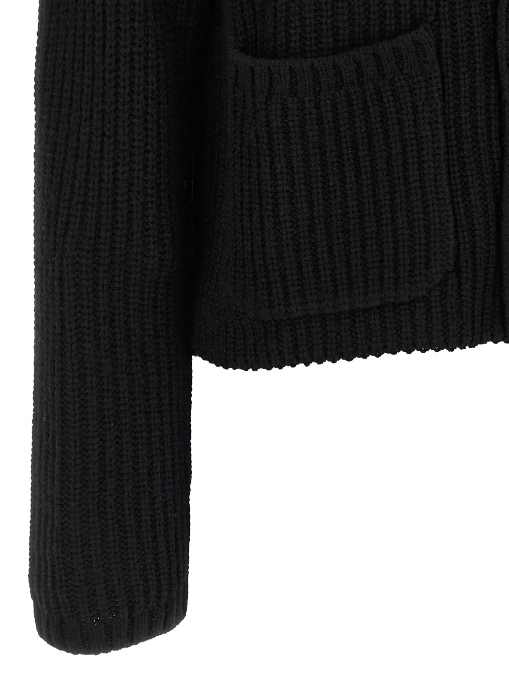 Черный вязаный трикотаж в рубчик, застежка на кнопки, передние карманы, нашивка с логотипом
