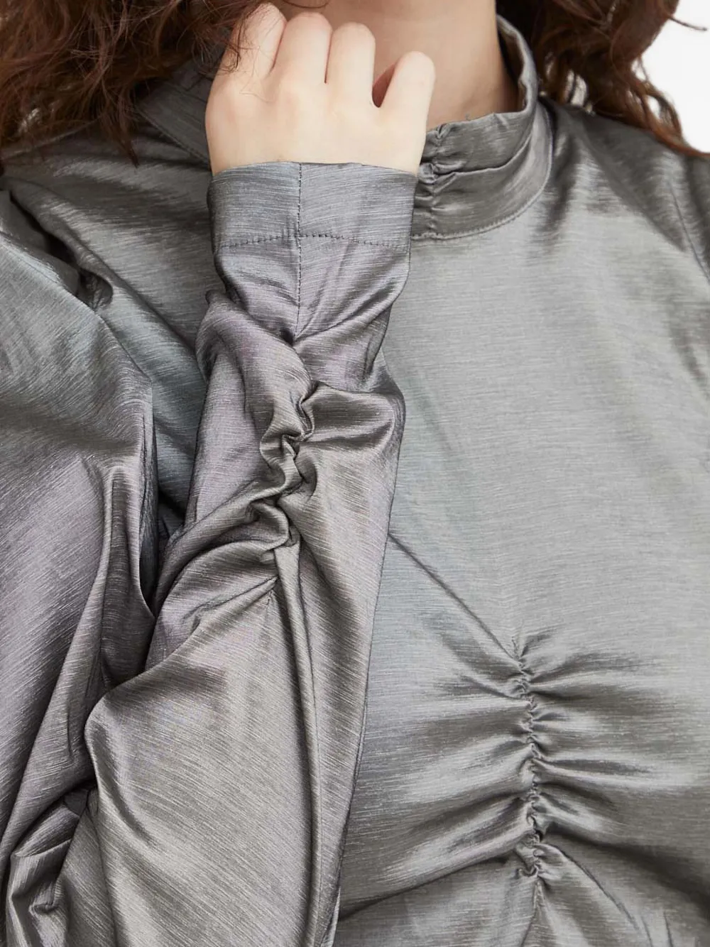 Топ с драпировкой и пышными рукавами Gestuz, серый 12 559₽