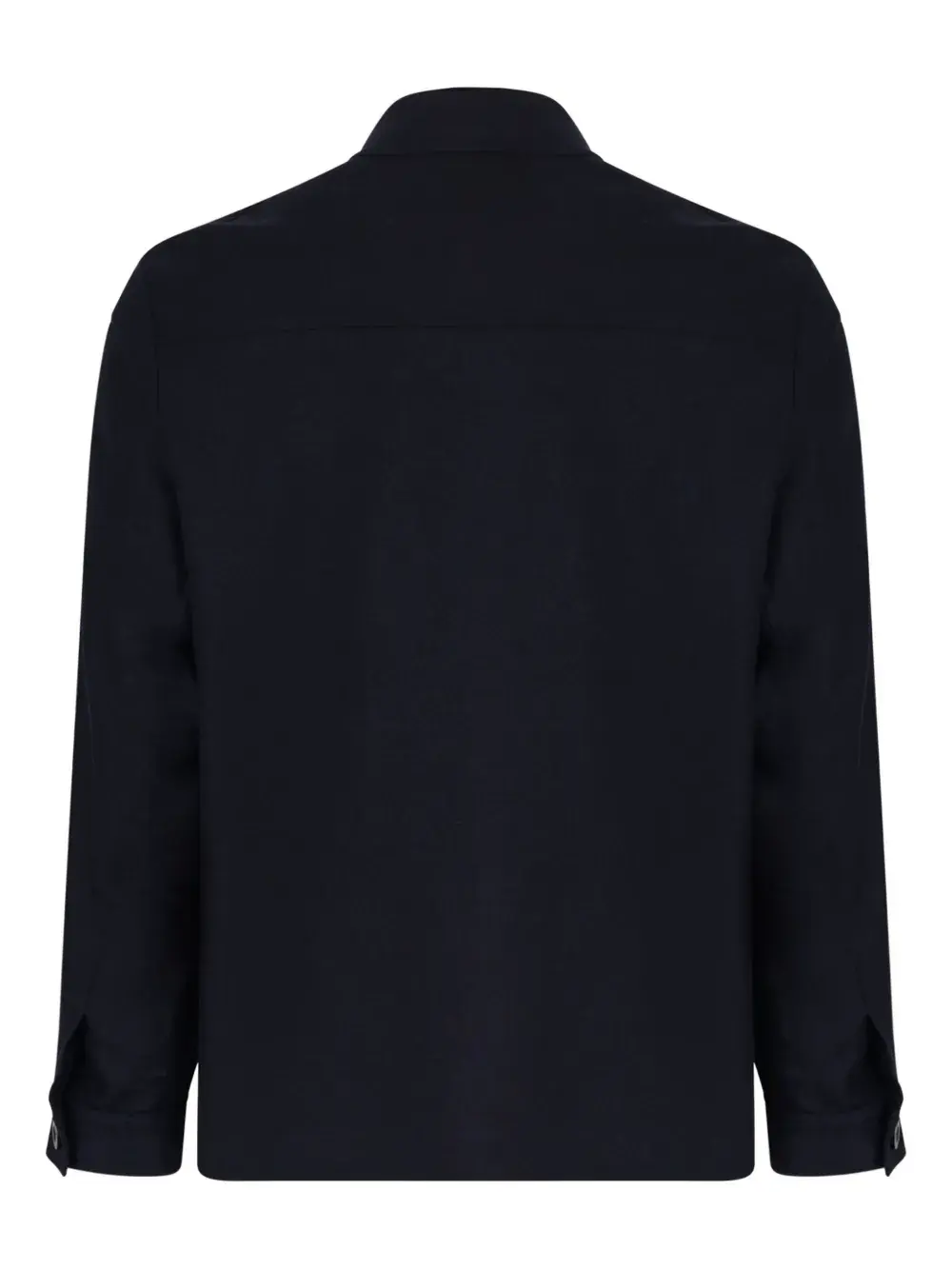 Темно-синий цвет, застежка на пуговицы, карманы на груди, длинные рукава, манжеты на пуговицах, отложной воротник