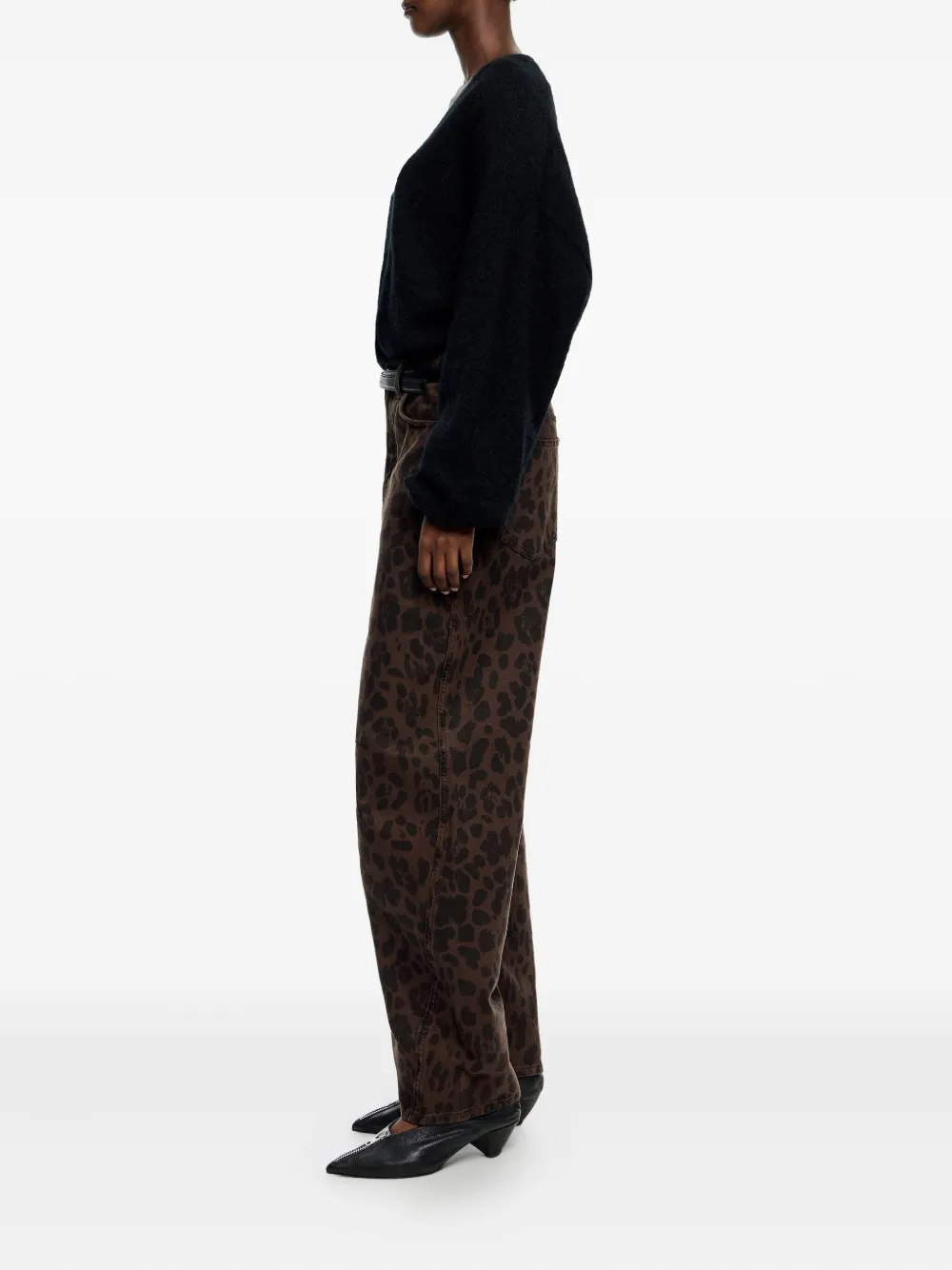 Темно-коричневый леопардовый принт, шлевки для ремня, пять карманов, многослойный дизайн, нашивка с логотипом сзади