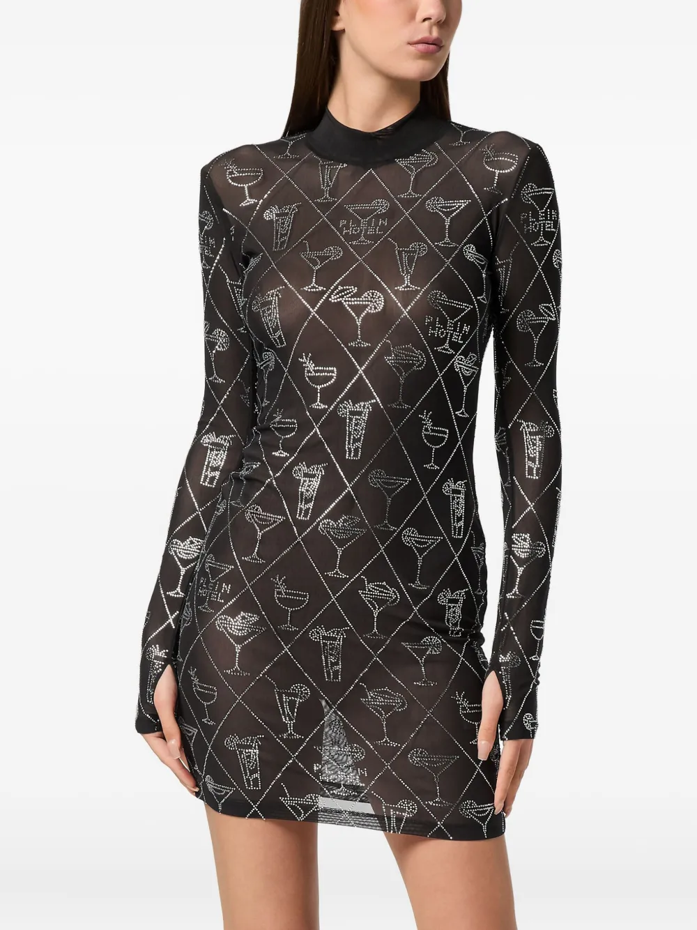 Платье мини с кристаллами Philipp Plein, черный 48 396₽