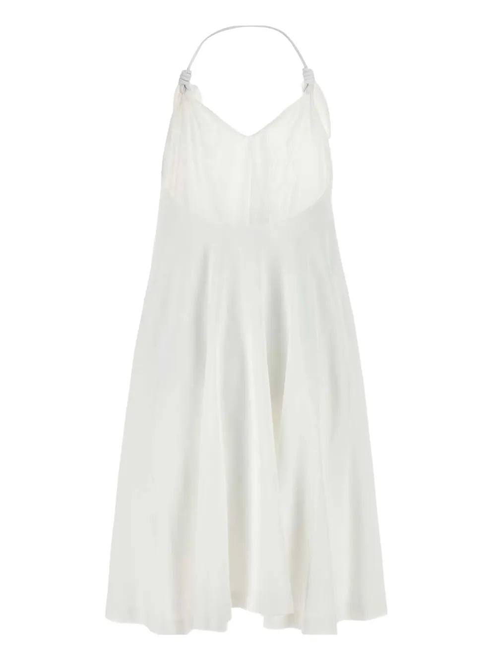 Белый топ без рукавов с V-образным вырезом, завязками и кожаной отделкой