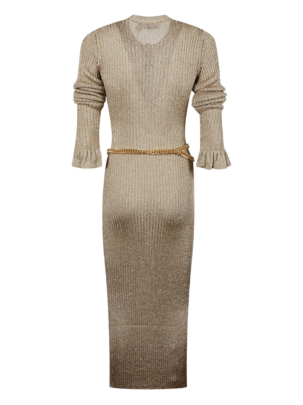Платье миди в рубчик Self-Portrait, золотистый 67 595₽
