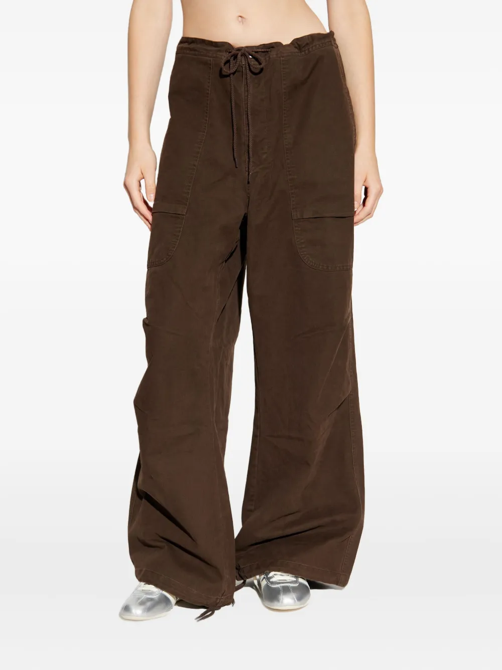 Коричневые брюки с завязкой на талии, накладными карманами и завязкой по низу