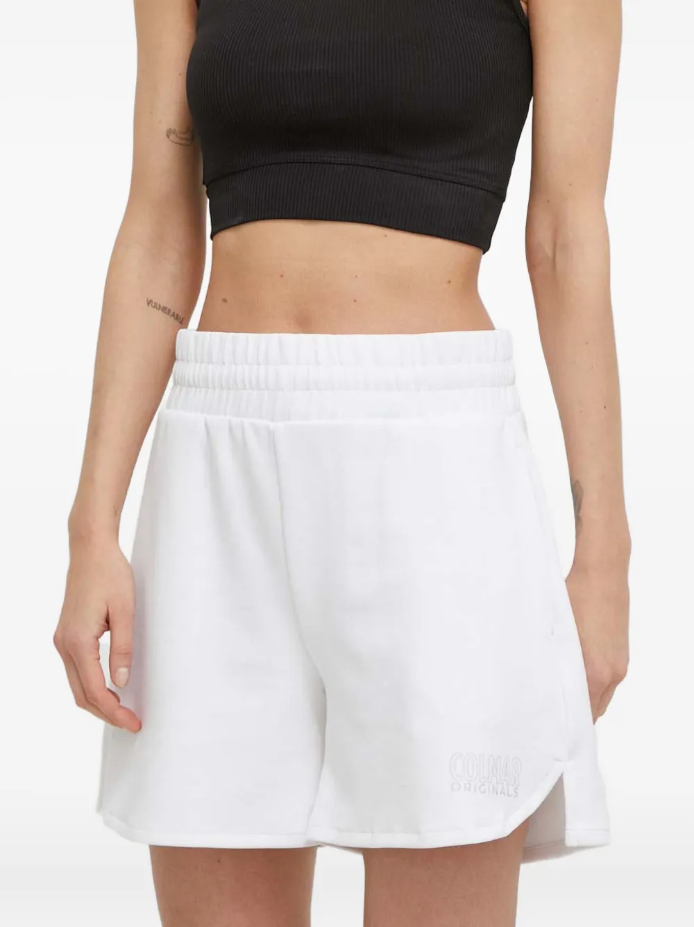 Белый логотип, эластичный пояс, короткие боковые разрезы