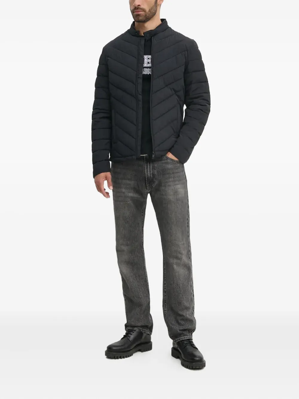 Стеганая куртка с рисунком "елочка" Guess Usa, черный