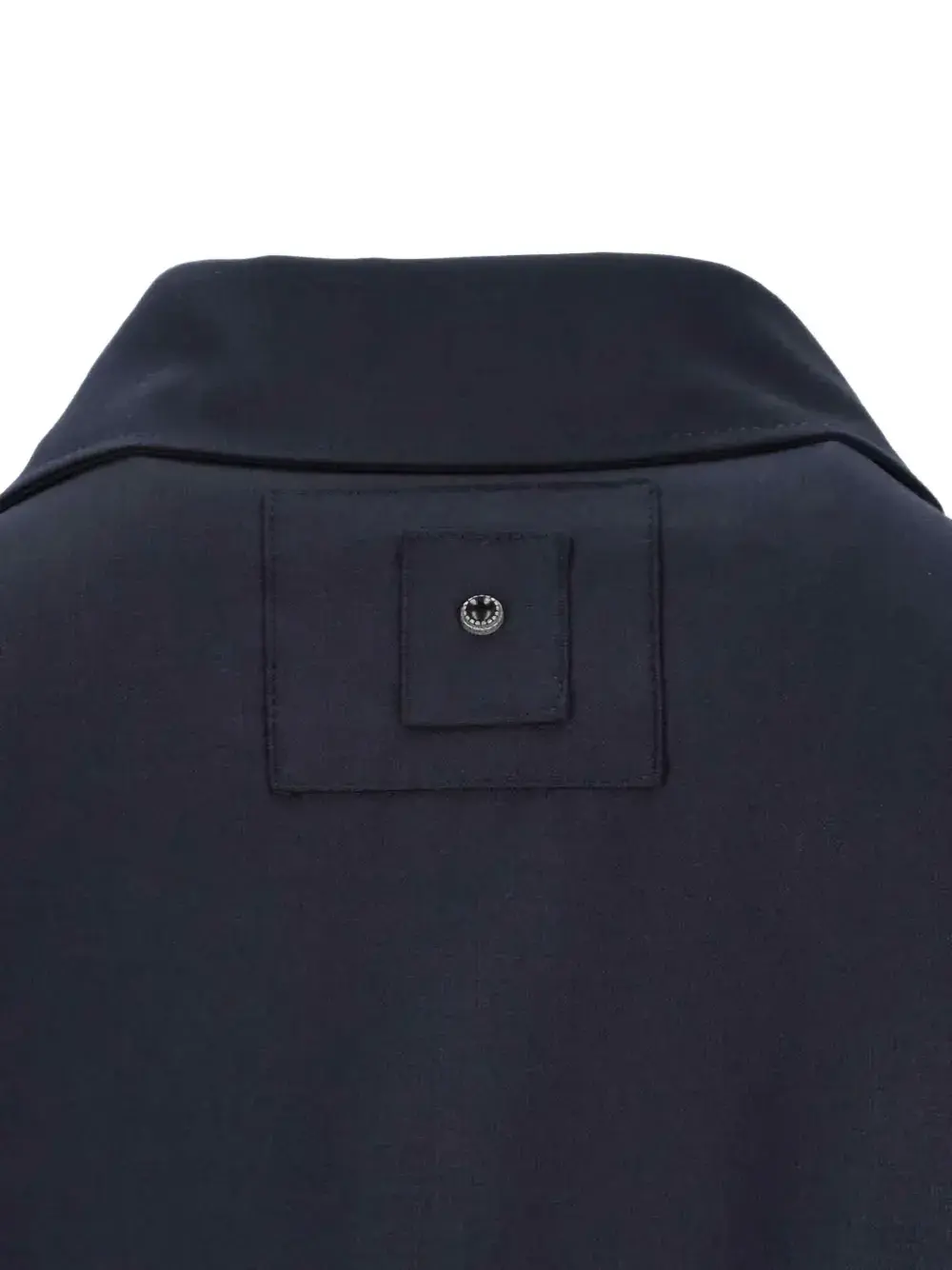 Голубая рубашка с застежкой на пуговицы, двумя нагрудными карманами, отложным воротником, длинными рукавами и манжетами на пуговицах