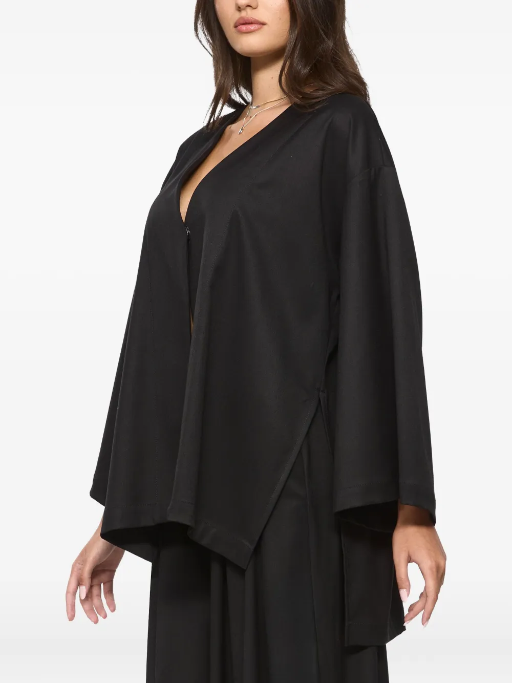 Черный V-образный вырез, широкие рукава, боковые разрезы