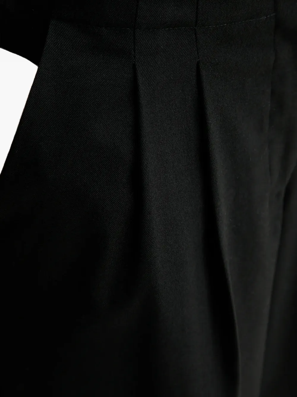 Черные, боковые карманы, складки спереди, потайная застежка, шлевки для ремня