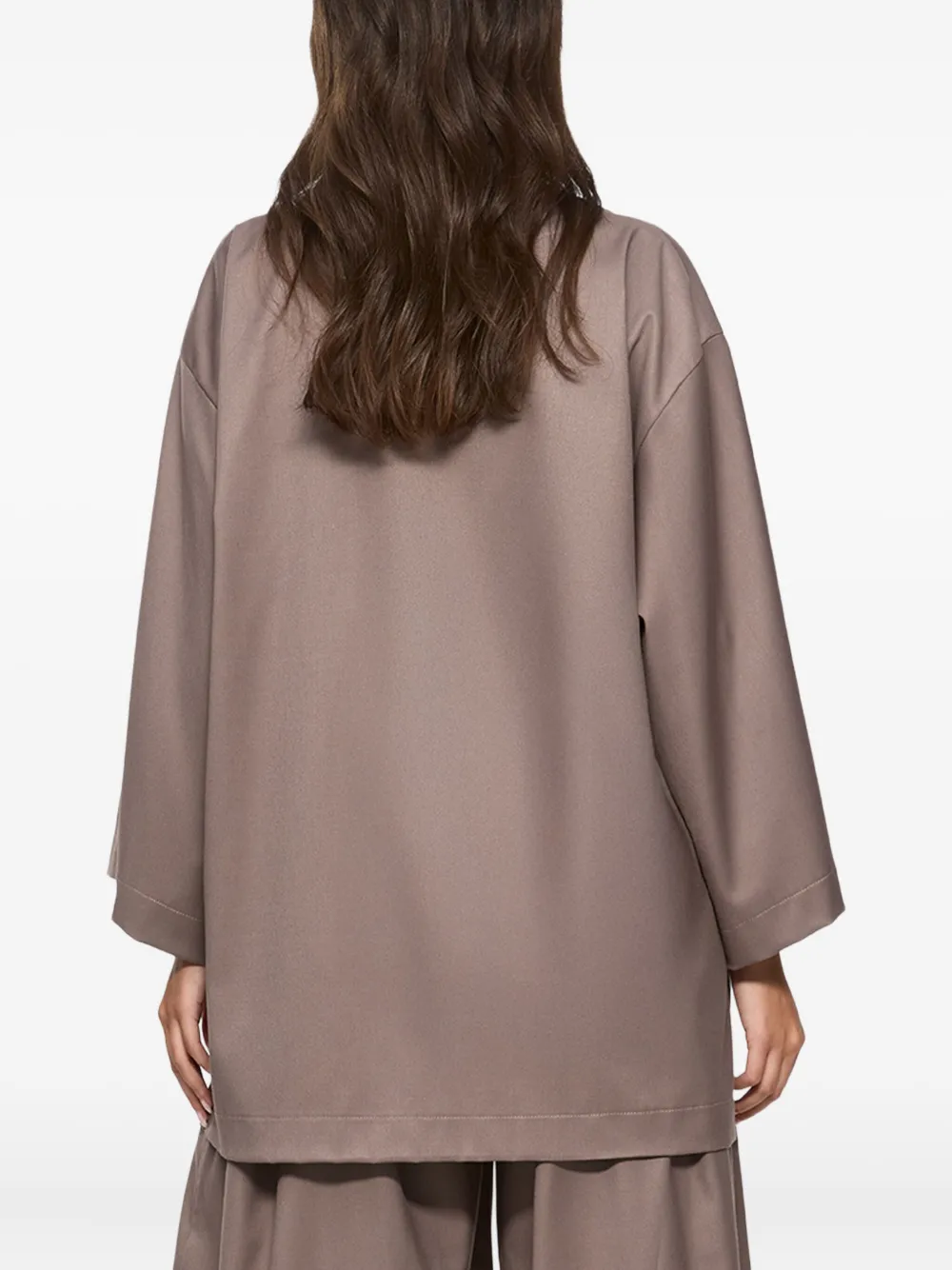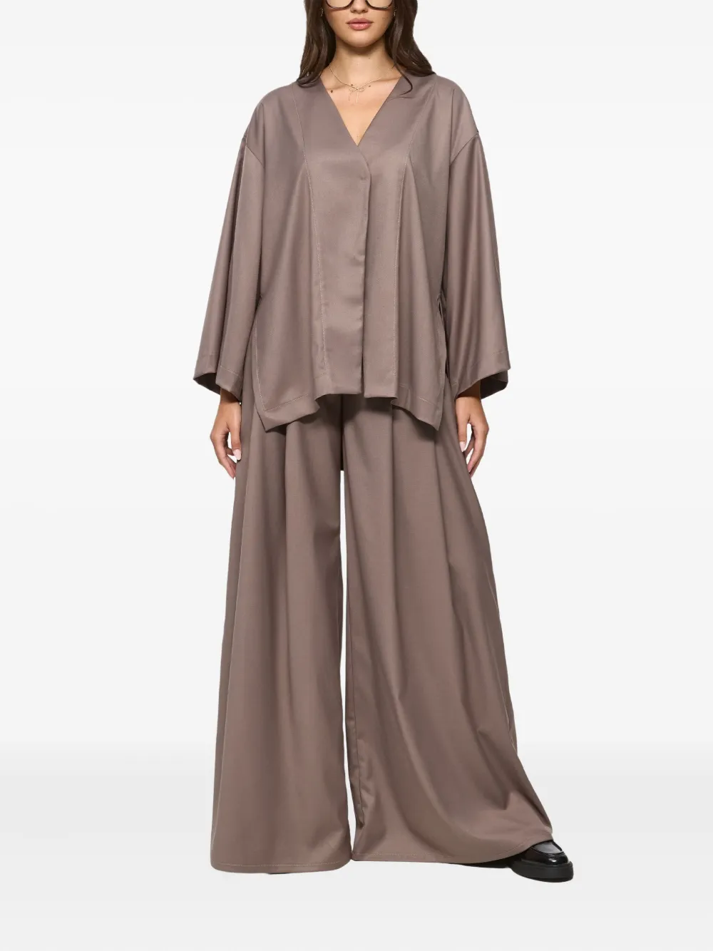 Бежевый V-образный вырез, широкие рукава, боковые разрезы, однотонная строчка