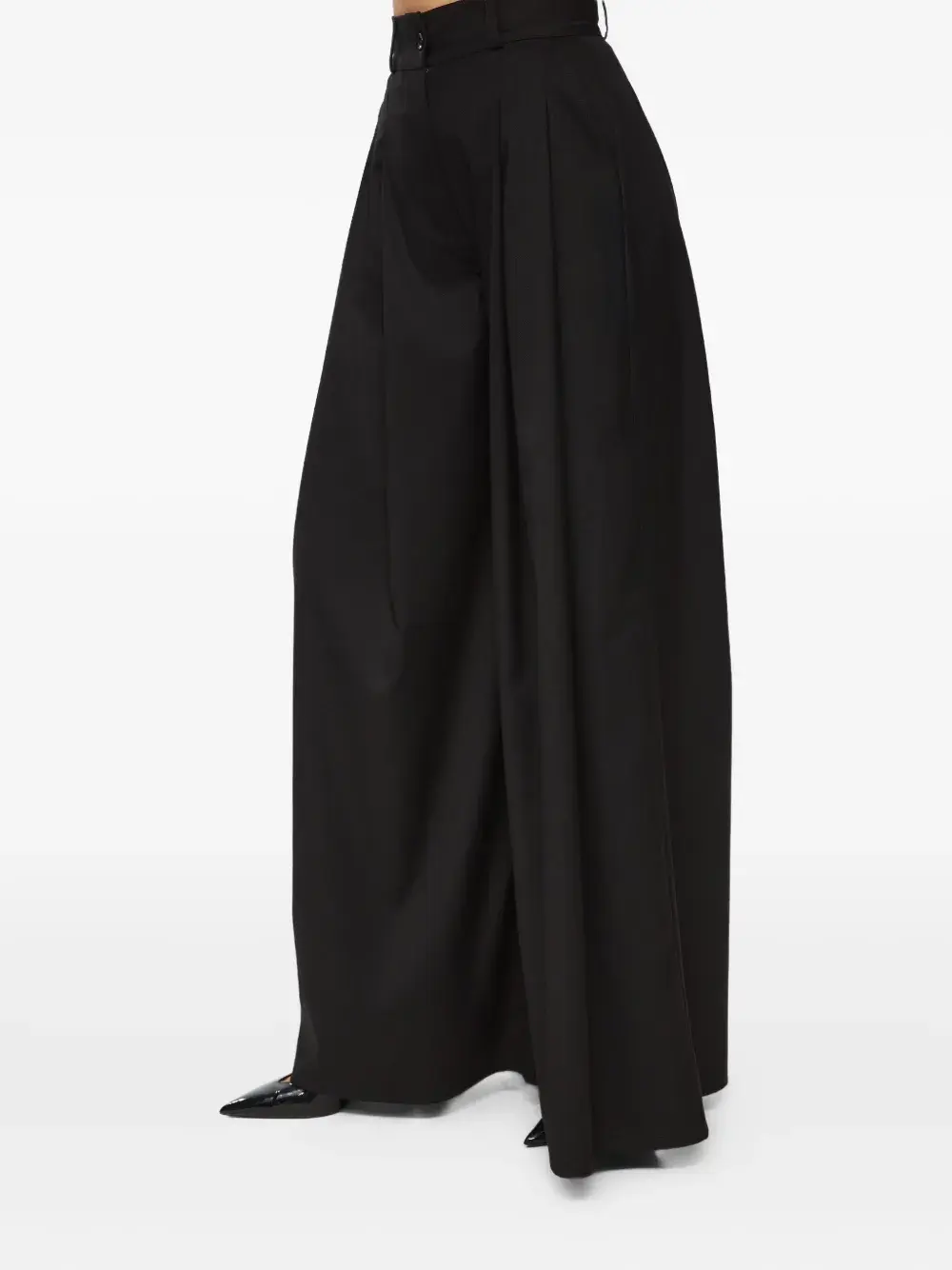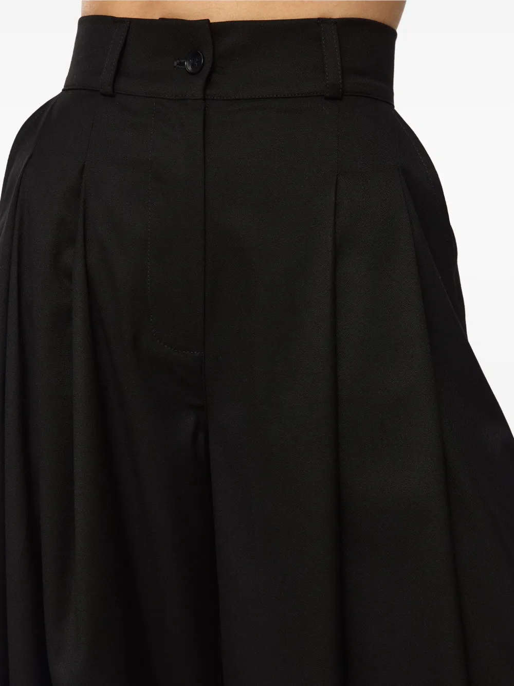 Черные брюки с застежкой на пуговицы, шлевками для пояса и плиссированным дизайном