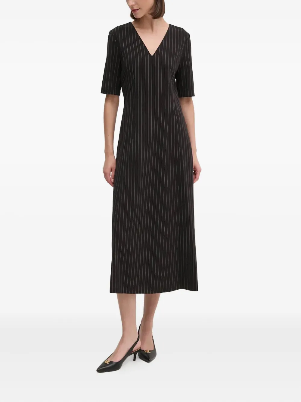 Платье миди в полоску с V-образным вырезом Dkny, черный