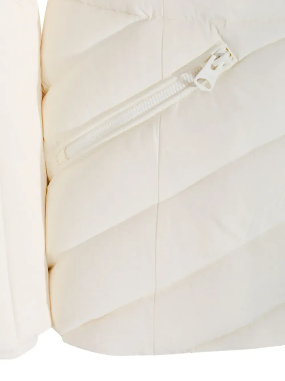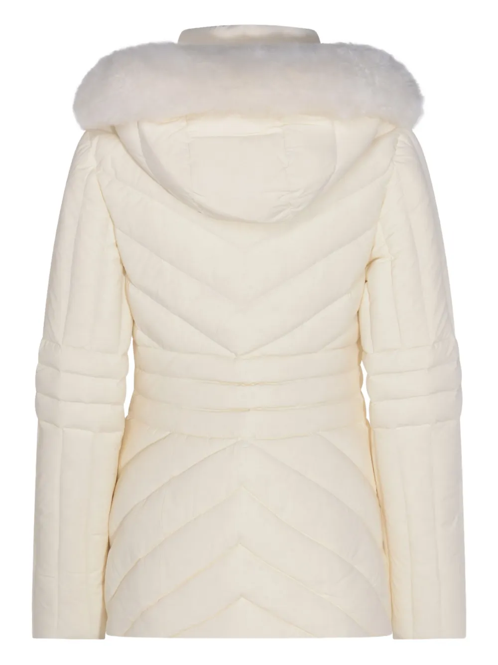 Белый искусственный мех на отделке, застежка-молния, стеганый узор "елочка", съемный капюшон, карманы на молнии, длинные рукава, утепленный дизайн