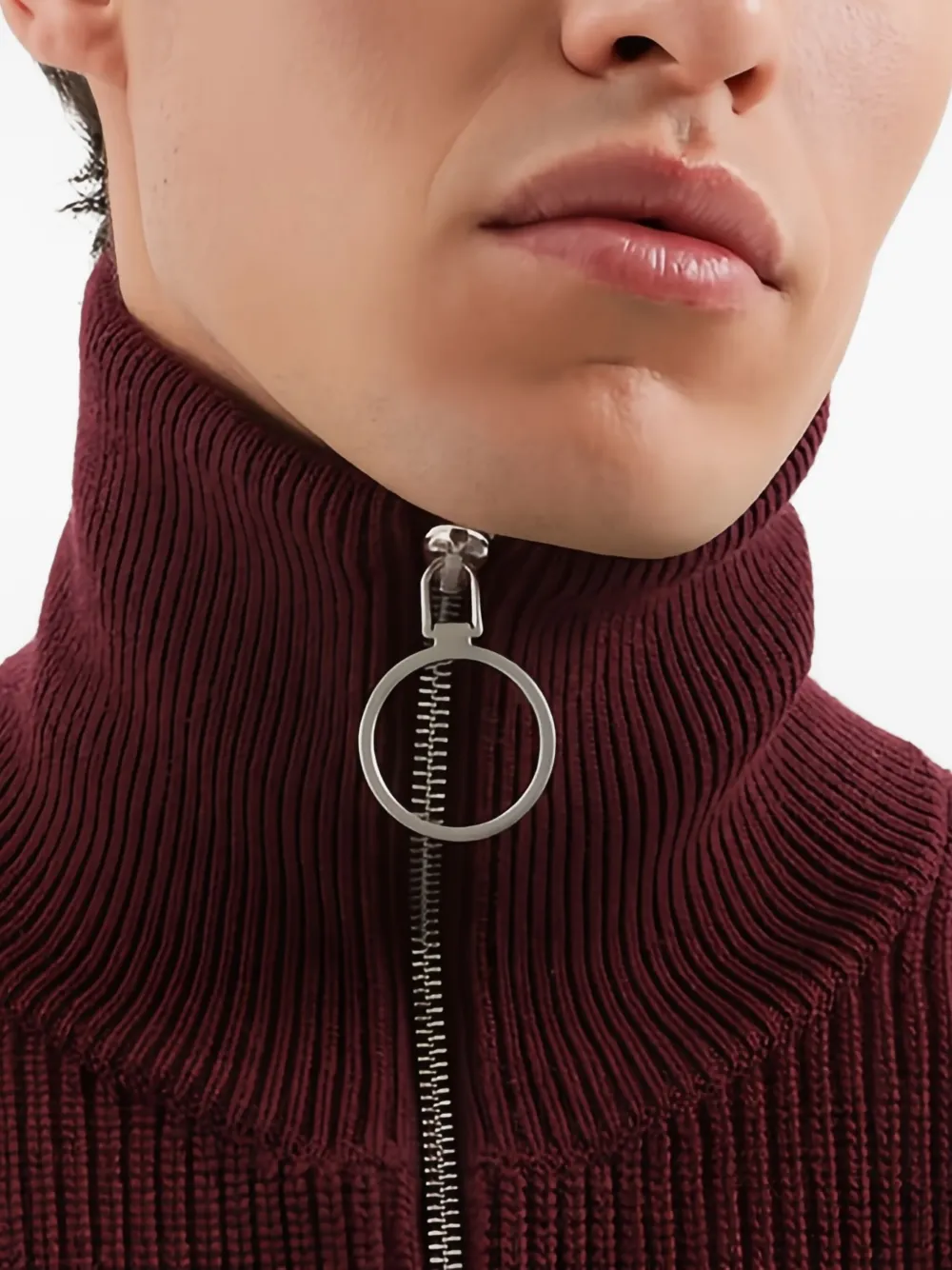 Бордовая вязаная кофта в рубчик на молнии с высоким воротником