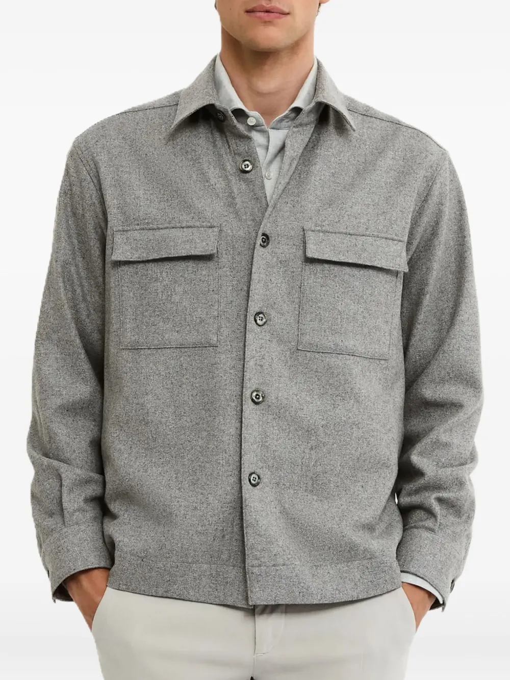 Серый, застежка на пуговицы, нагрудные карманы, длинные рукава, отложной воротник
