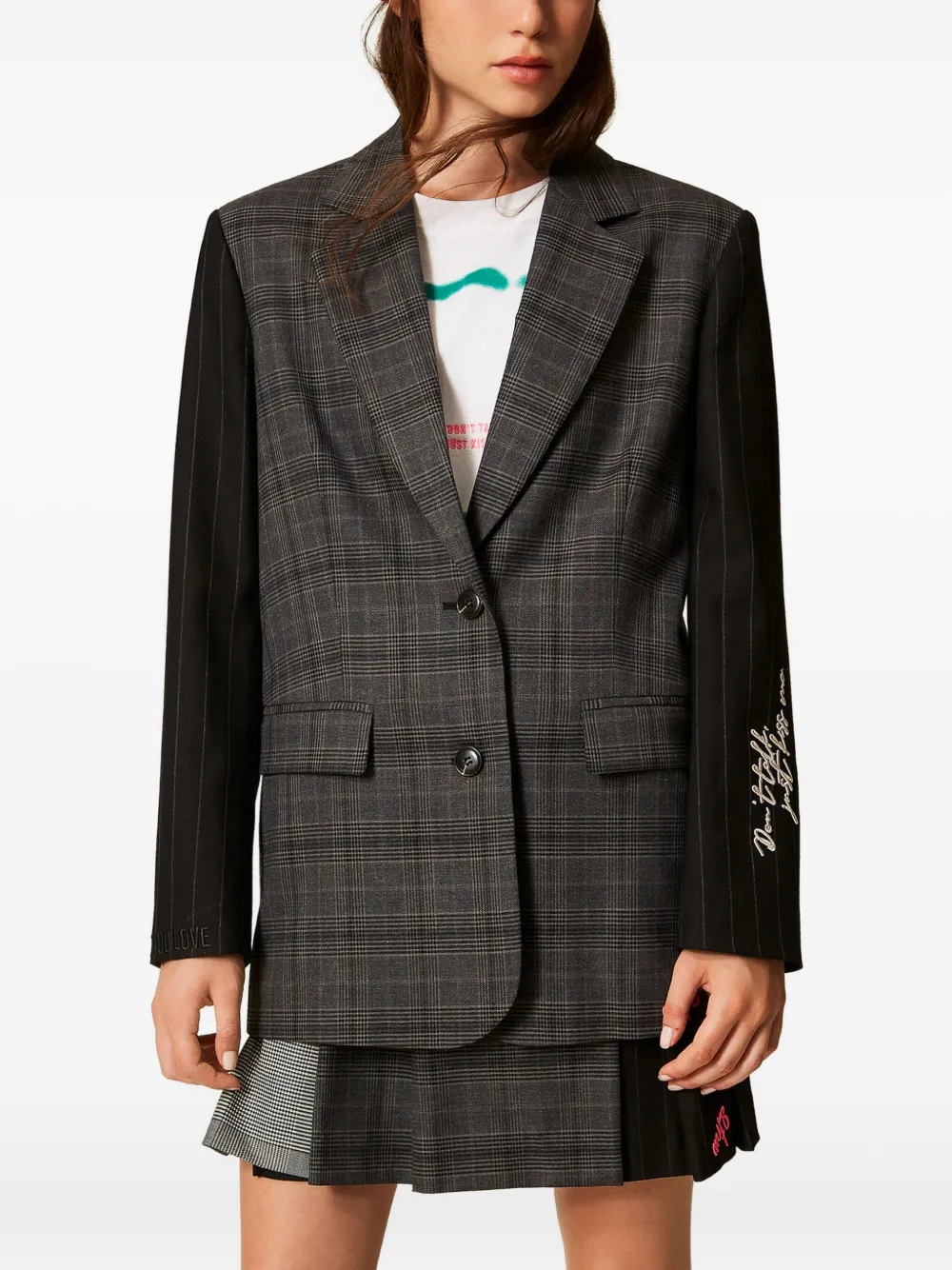 Клетчатый пиджак с вышивкой Twinset, серый