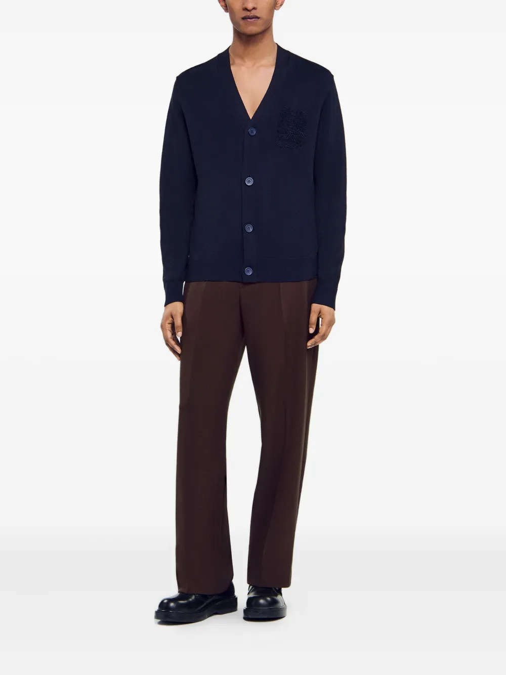 Кардиган с V-образным вырезом и вышивкой Sandro, синий