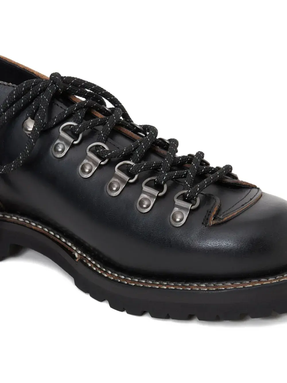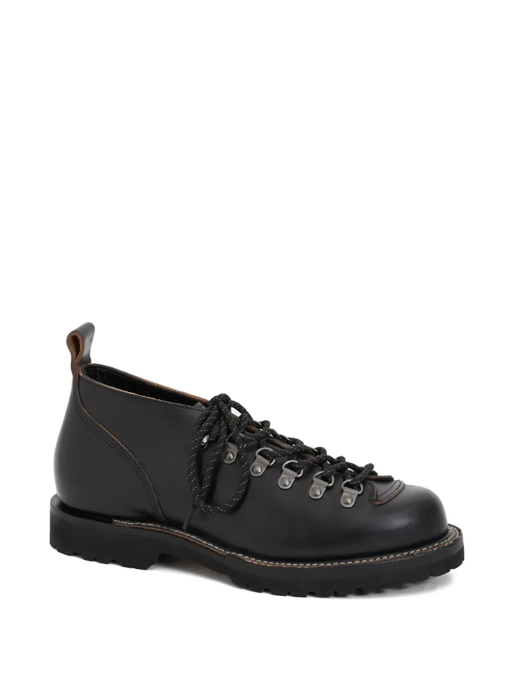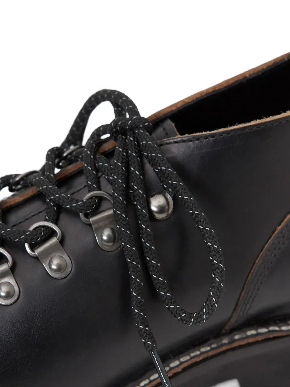 Верх из черной кожи, металлические люверсы, петля для натягивания, шнуровка, рифленая подошва