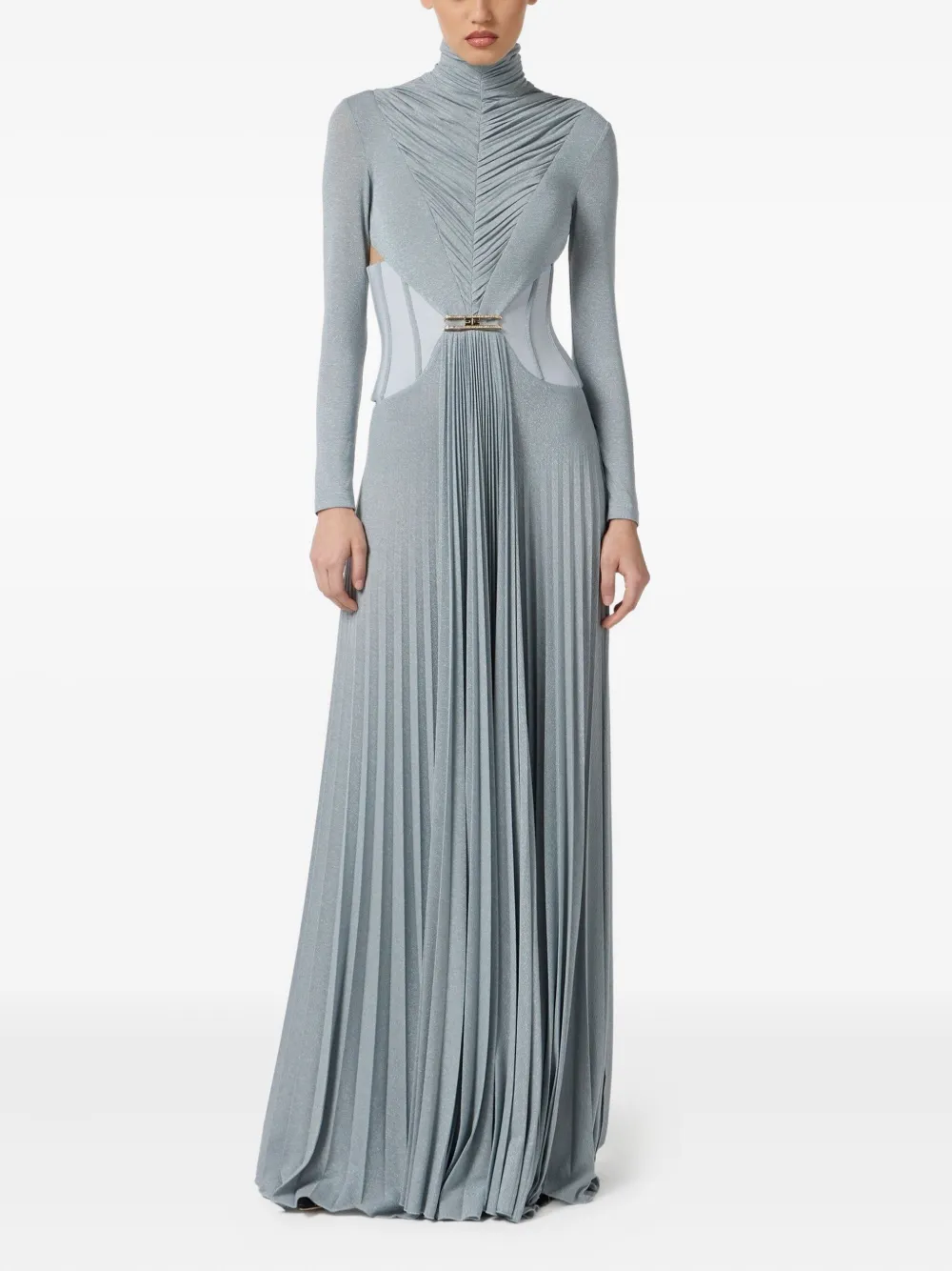 Плиссированное платье с высоким воротником Elisabetta Franchi, синий 67 076₽