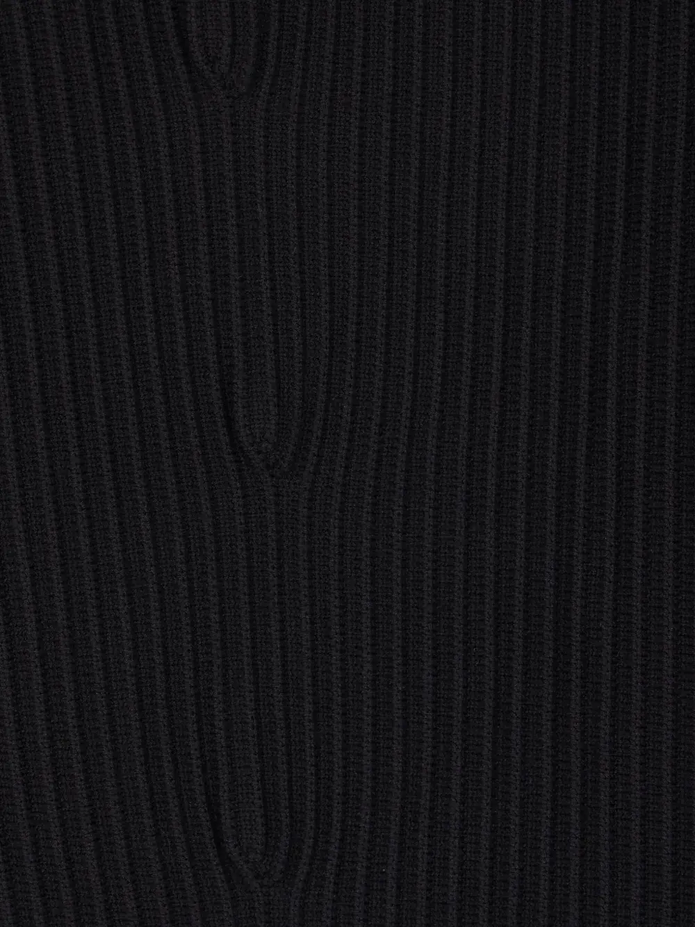 Черная вязаная фактурная кофта на пуговицах с V-образным вырезом, длинными рукавами и рубчатым дизайном