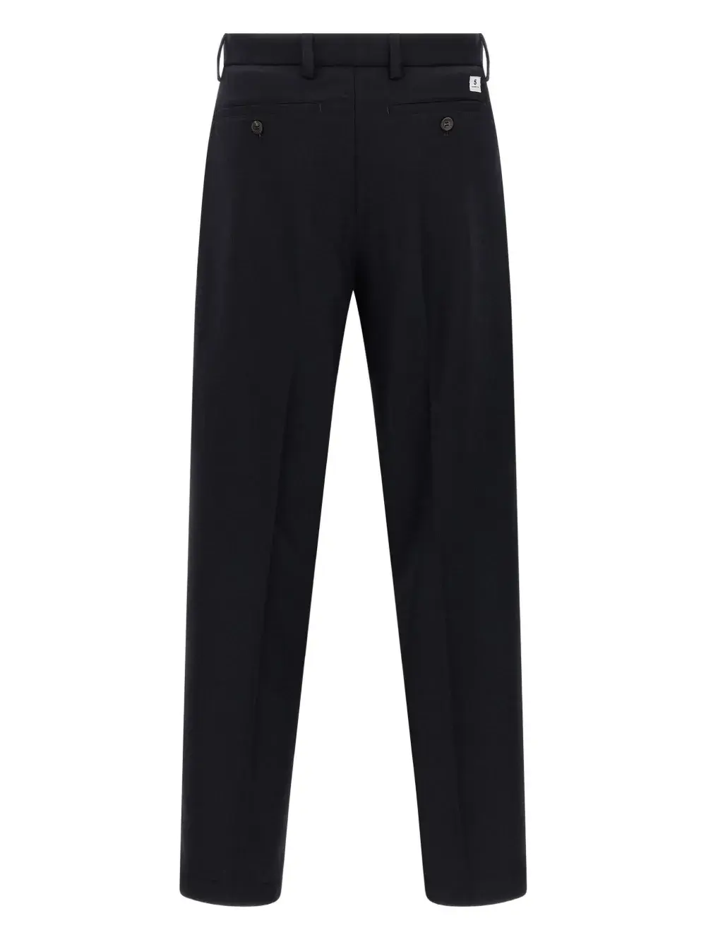 Синие застежка-молния и пуговица, защипы, отутюженные складки, карманы