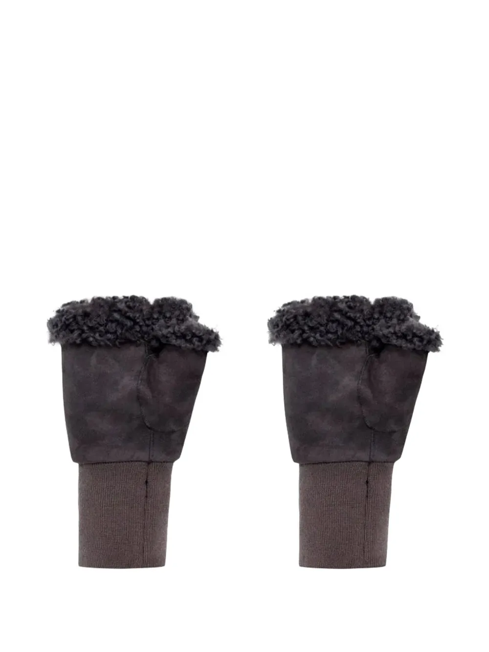 Коричневые митенки с отделкой из овчины и ребристыми манжетами