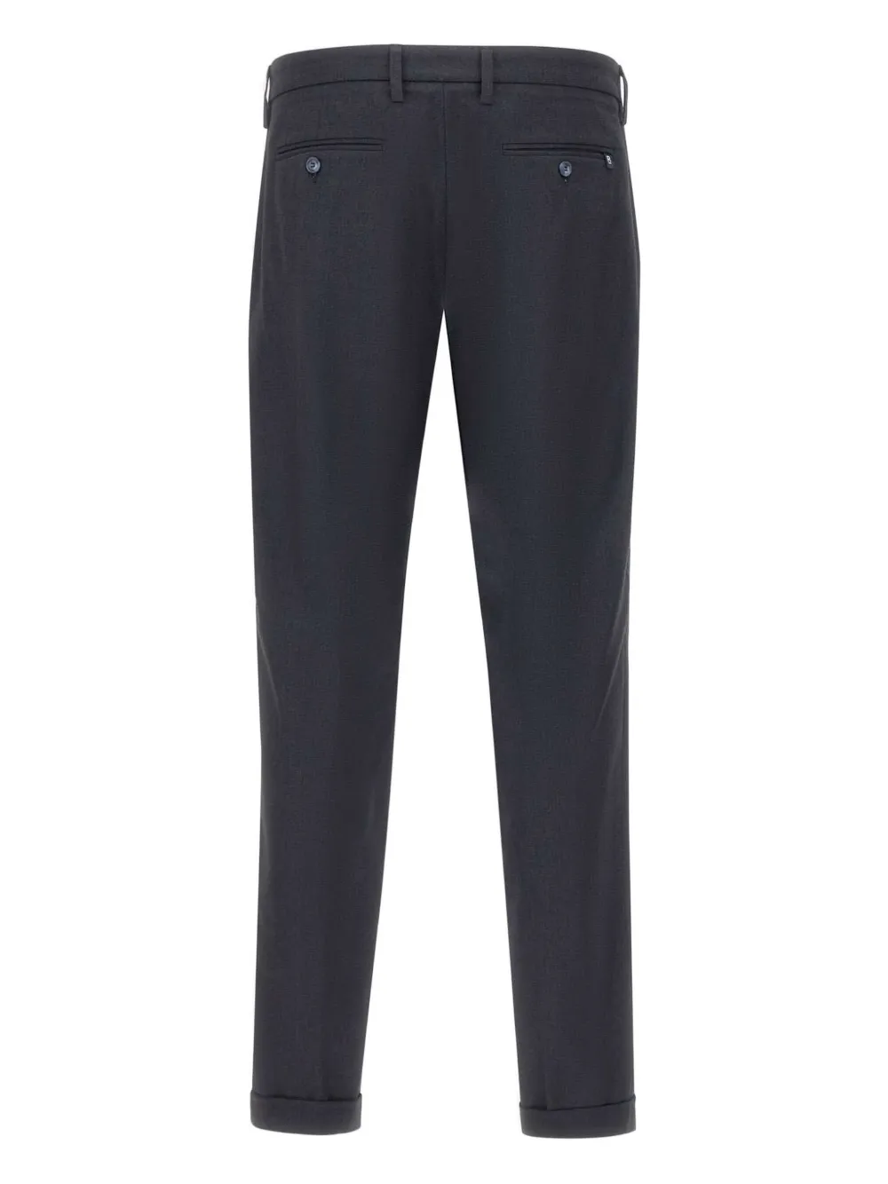 Синие боковые прорезные карманы, задние карманы на пуговицах, застежка на молнию, крючок и пуговицу