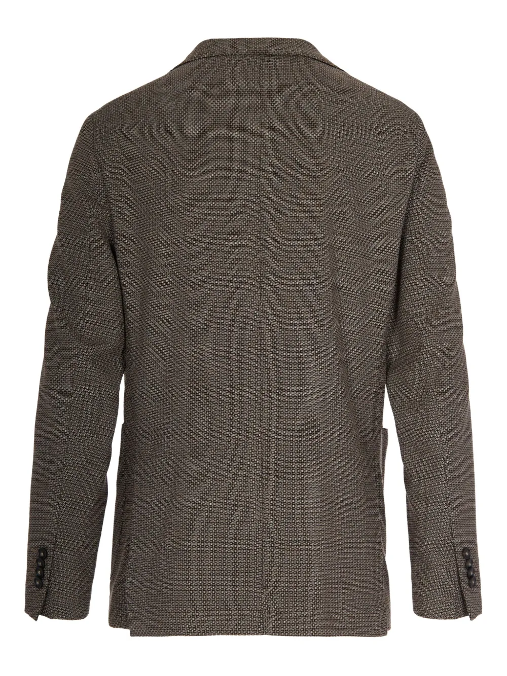 Коричневый фактурный пиджак с застежкой на пуговицы, лацканом, накладными карманами и манжетами на пуговицах