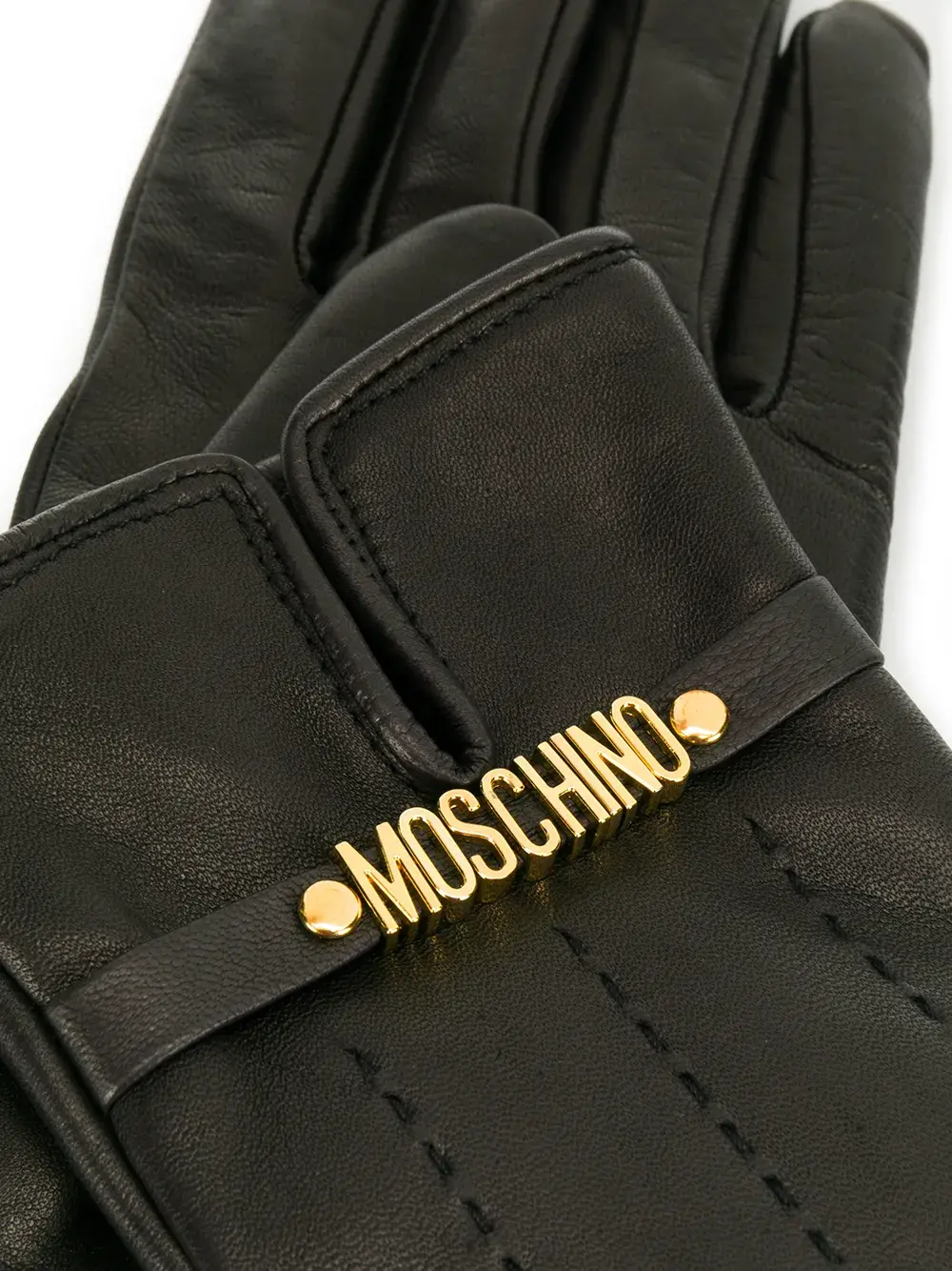 Перчатки с логотипом от Moschino (Москино). Золотистый металлический логотип. Цвет: черный.