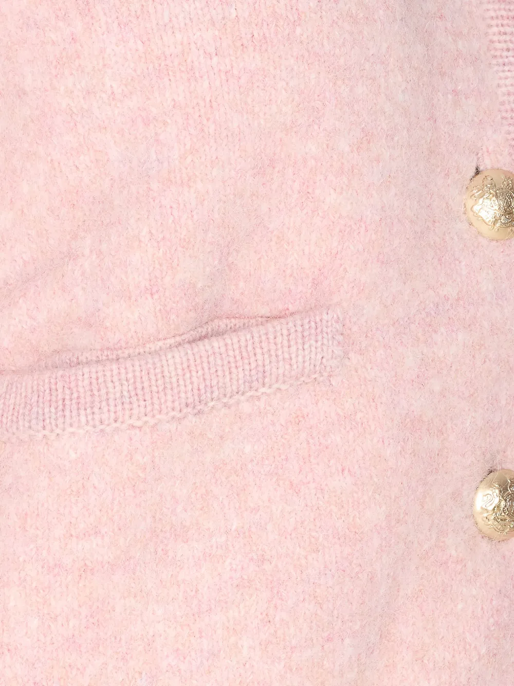 Нежно-розовый, застежка на пуговицы спереди, круглый вырез, передние карманы, эффект букле