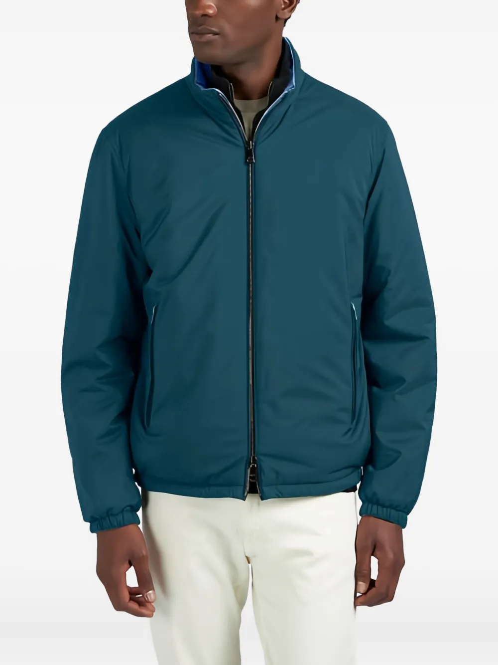 Зеленый и синий, двусторонний, застежка-молния, карманы на молнии, длинные рукава
