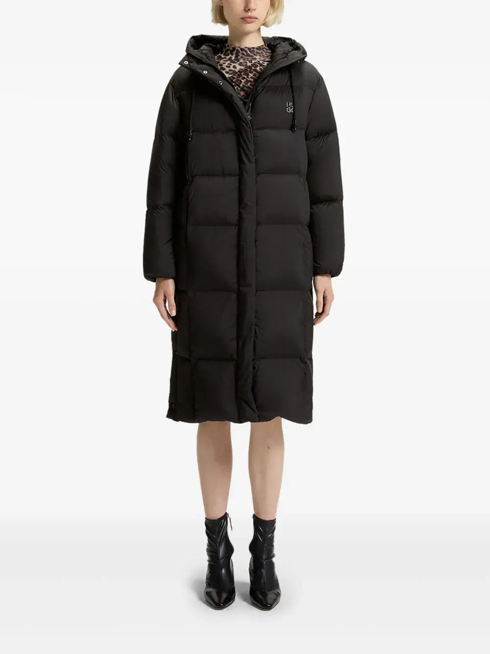 Стеганое пальто с капюшоном Hugo, черный
