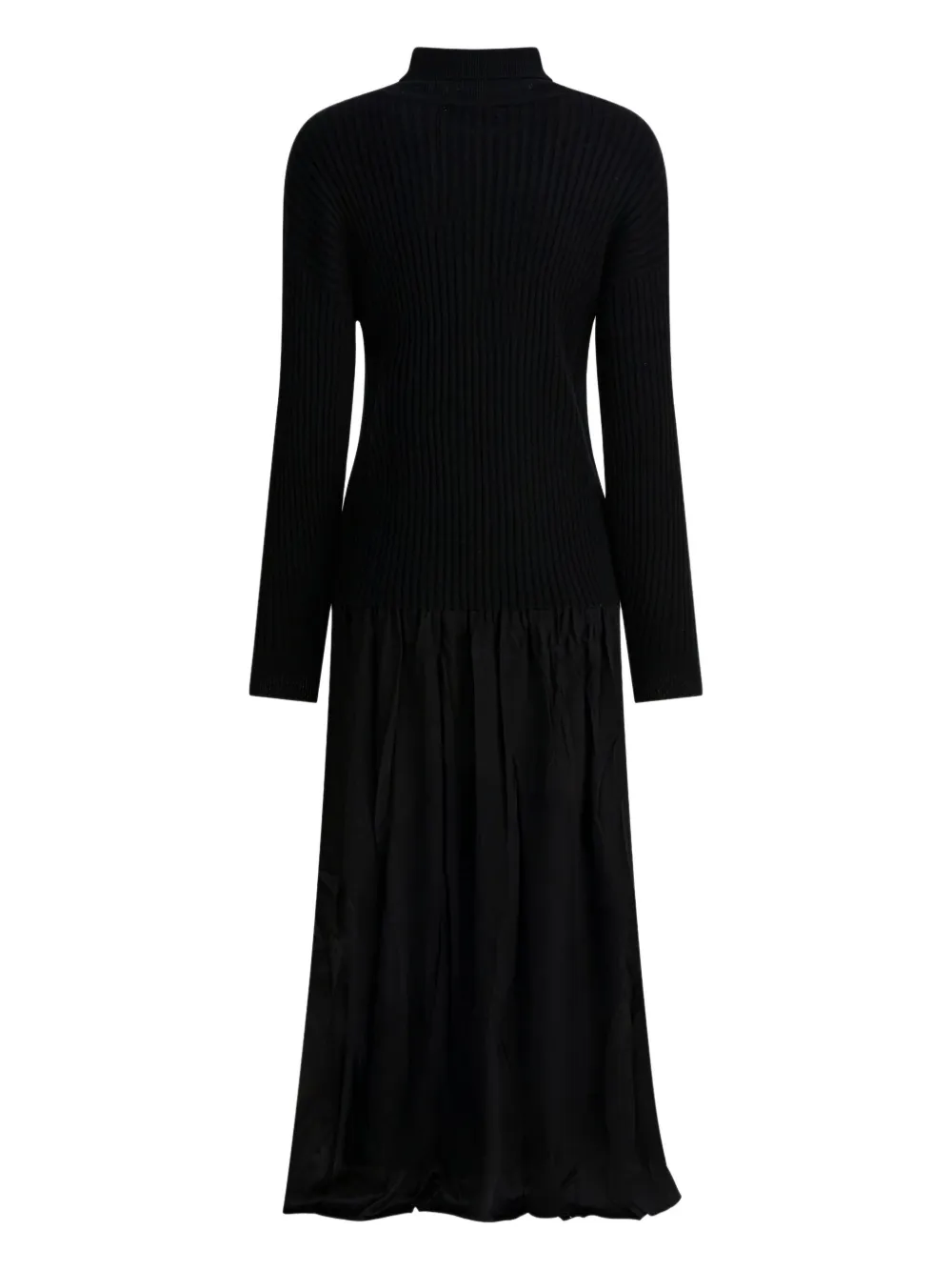 Черный вязаный трикотаж с ребристой текстурой, высокий воротник, длинные рукава, многослойный дизайн