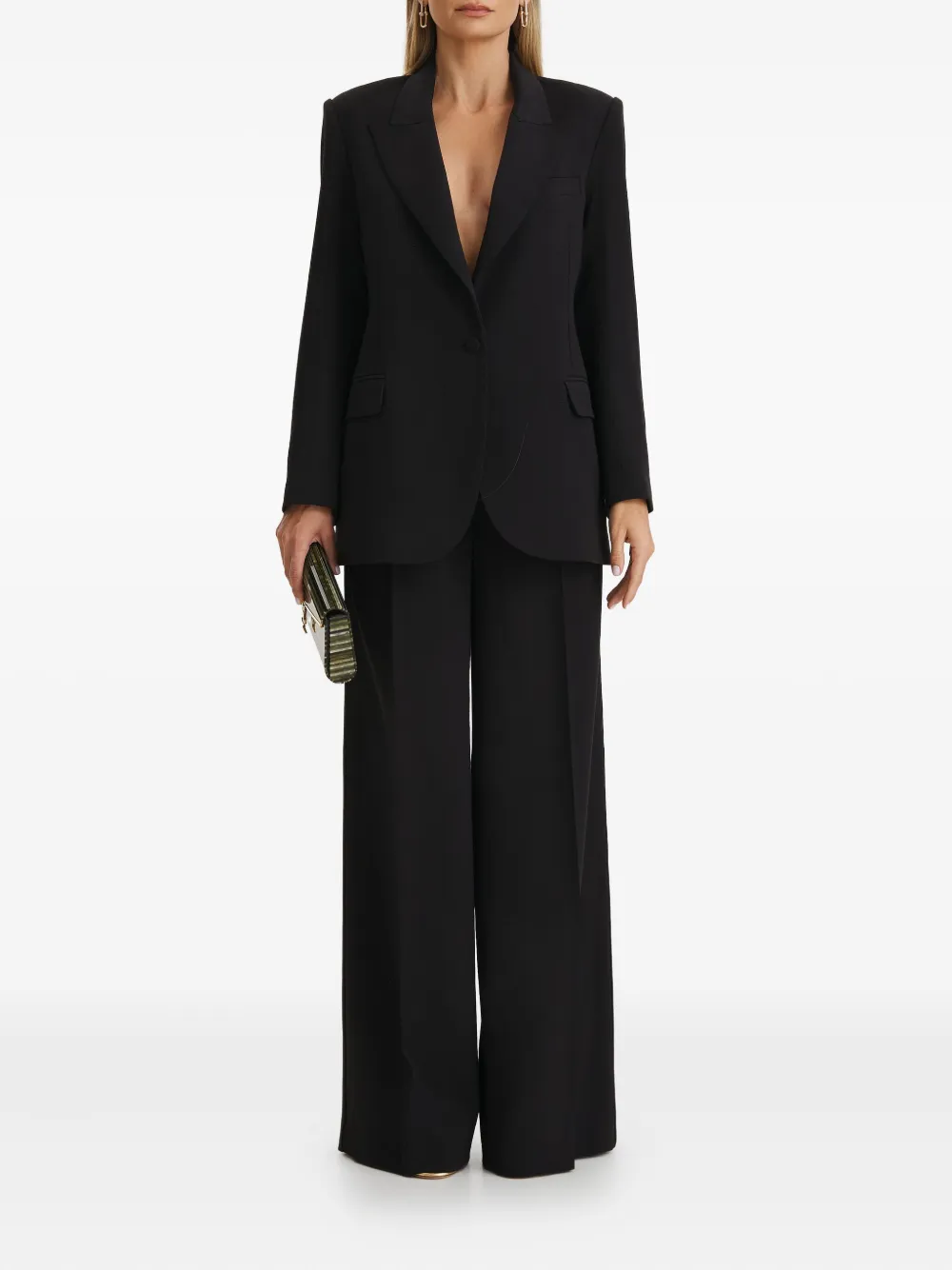 Черные, плиссированные спереди, боковые карманы в швах, скрытая застежка