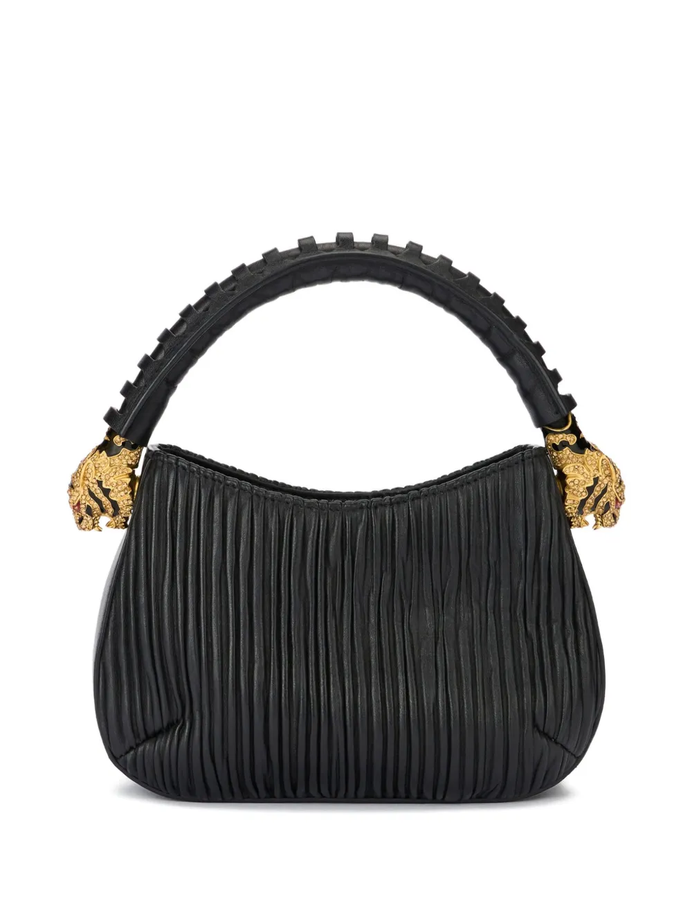 Черная сумка с драгоценным украшением в виде тигра, эффект плиссировки, верхняя ручка с текстурой, внутренний накладной карман
