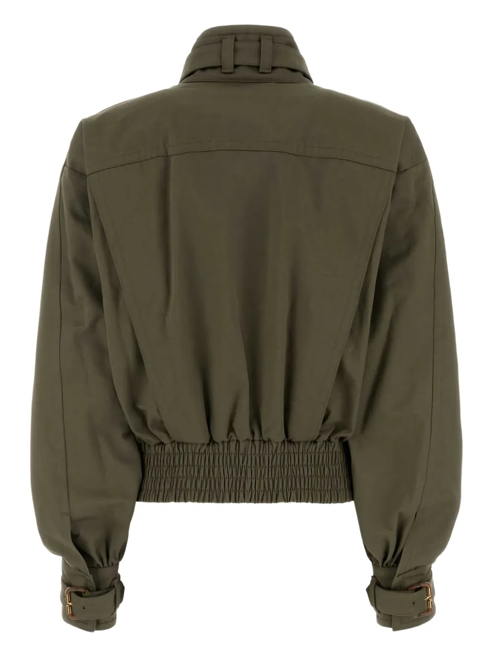 Армейско-зеленый хлопок, передние карманы с клапанами, пряжка, эластичный низ, высокий воротник