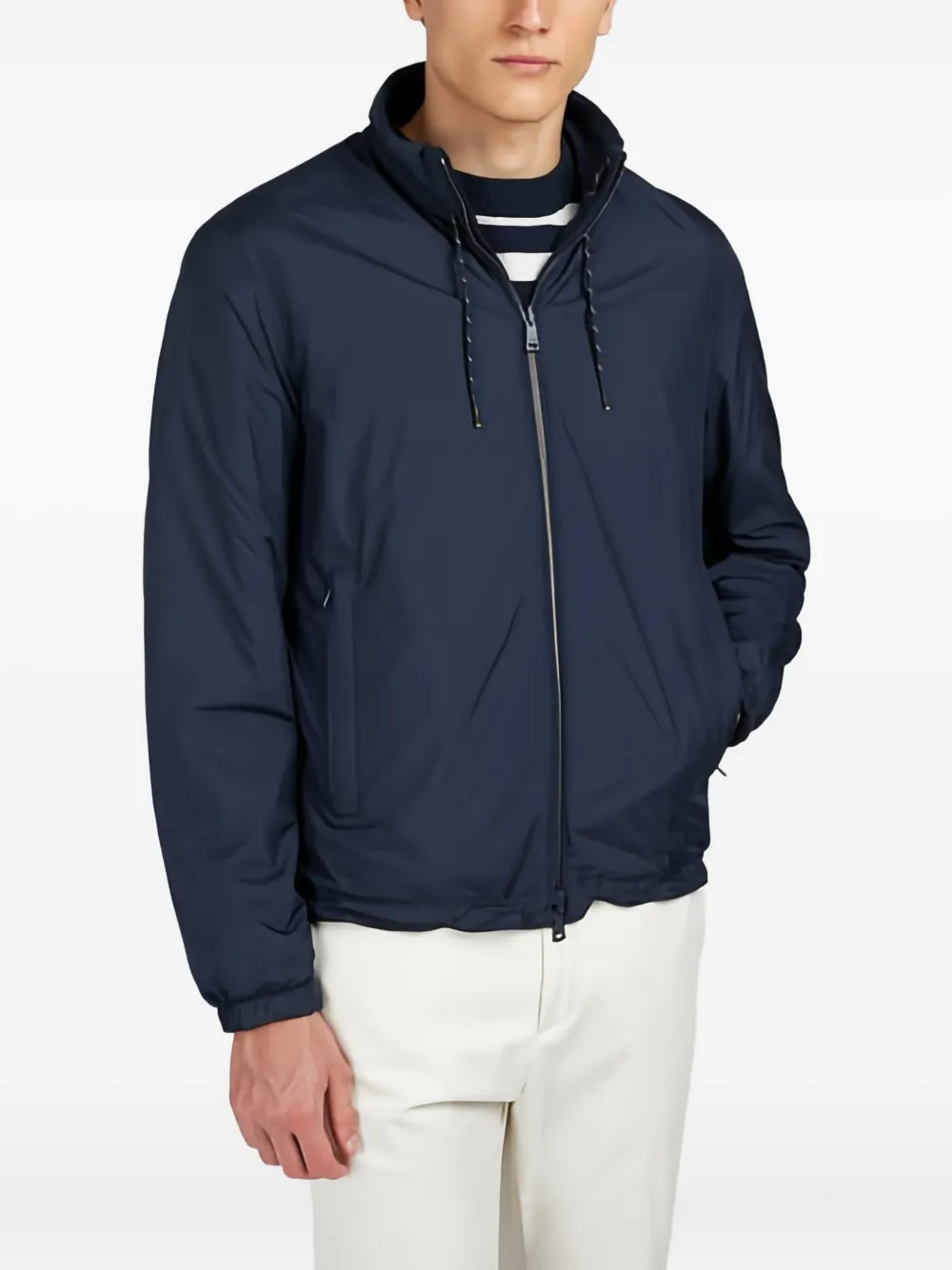 Темно-синий застежка-молния высокий воротник подол на кулиске двусторонний дизайн