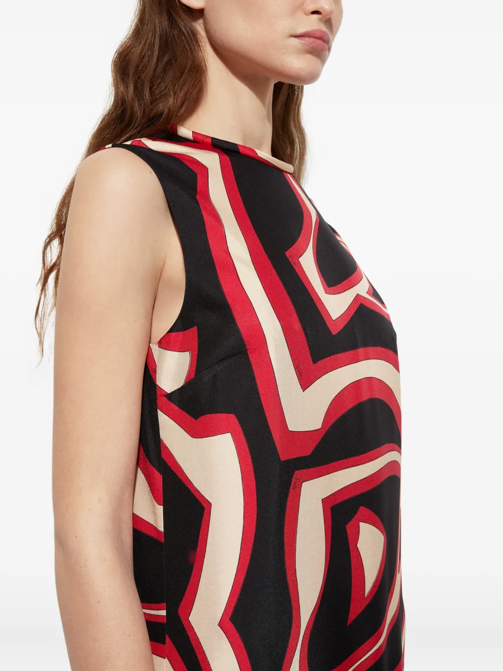 Черный/красный принт Labirinto, круглый вырез, без рукавов, скрытая застежка-молния