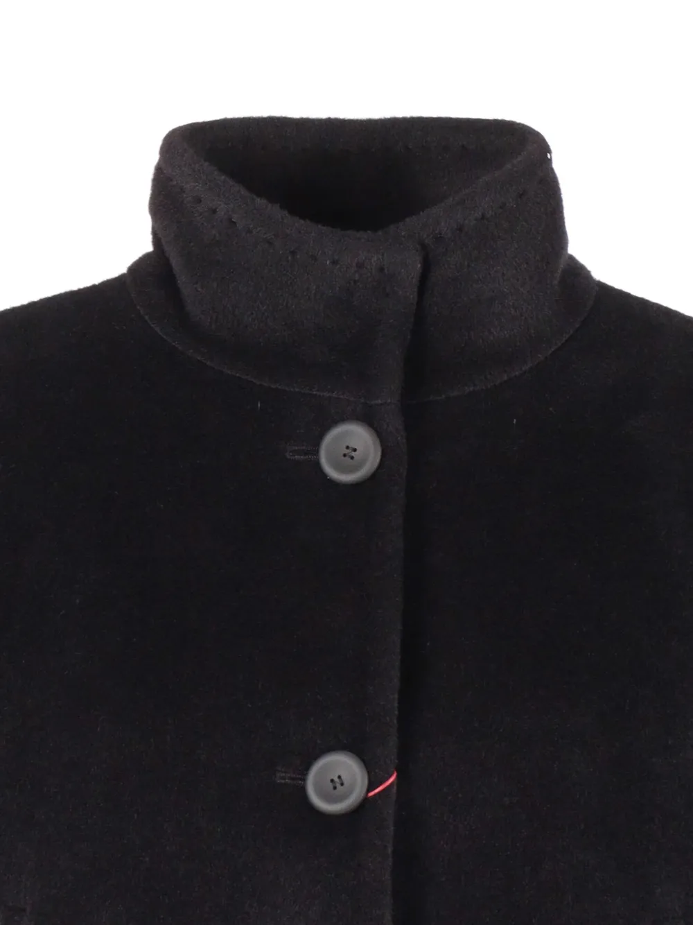 Черная куртка с застежкой на пуговицы, высоким воротом и укороченной длиной