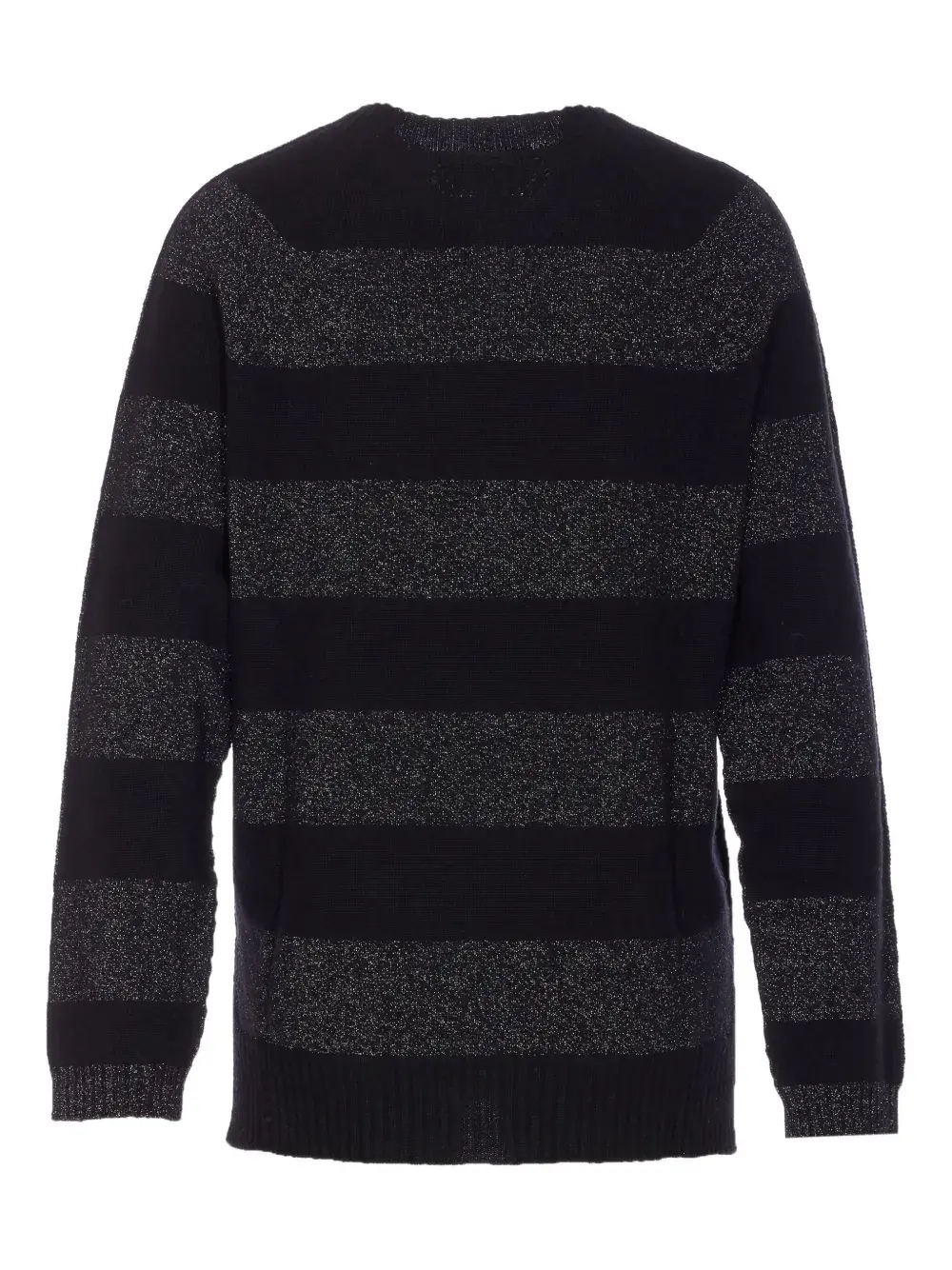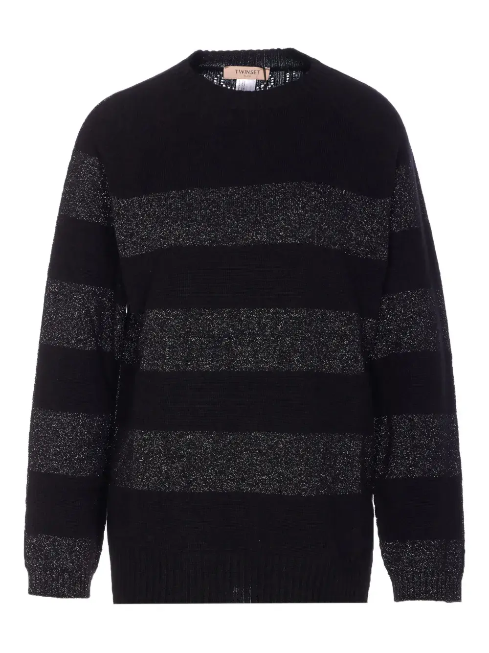 Черный с полосатым узором, круглый вырез, длинные рукава, ребристый низ, ребристые манжеты