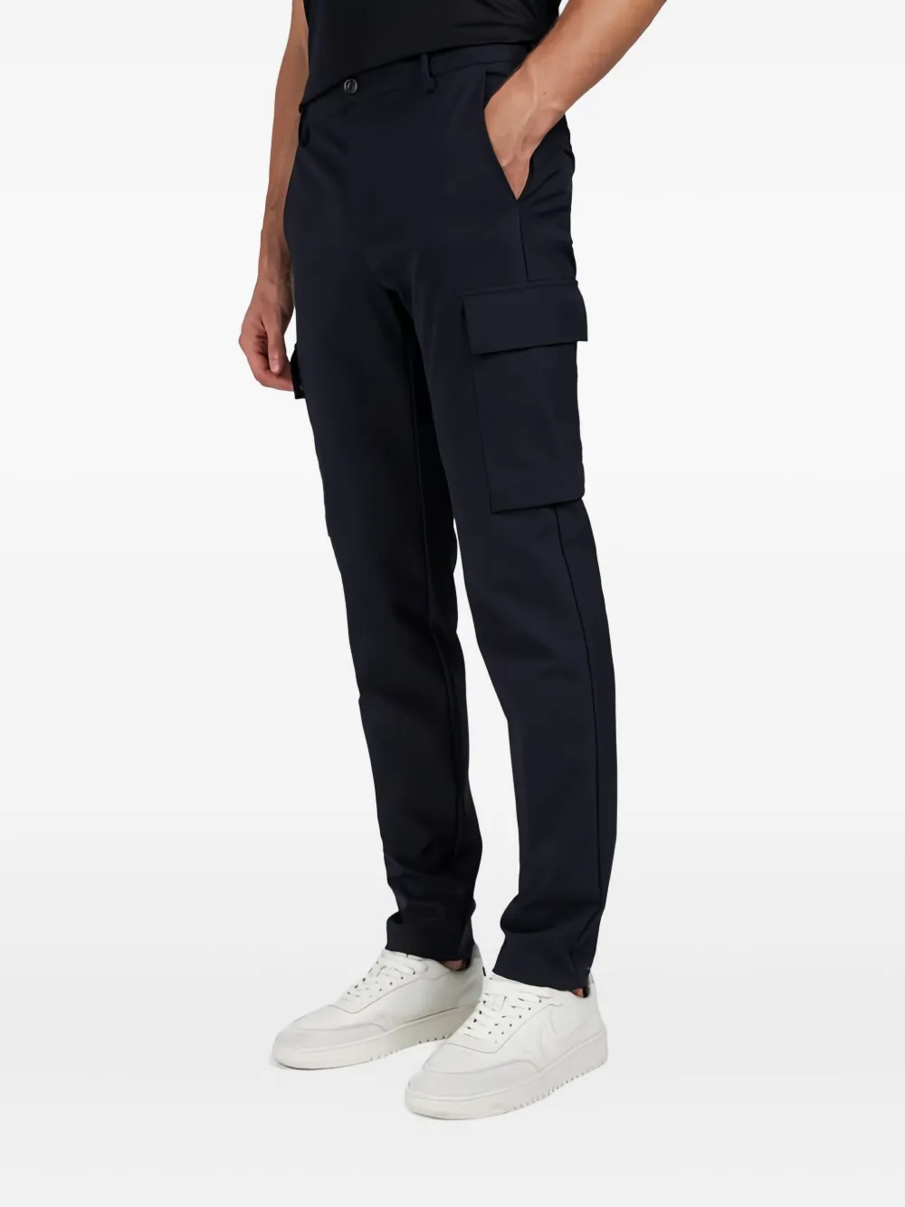 Темно-синие брюки с карманами, шлевками для ремня и боковыми карманами