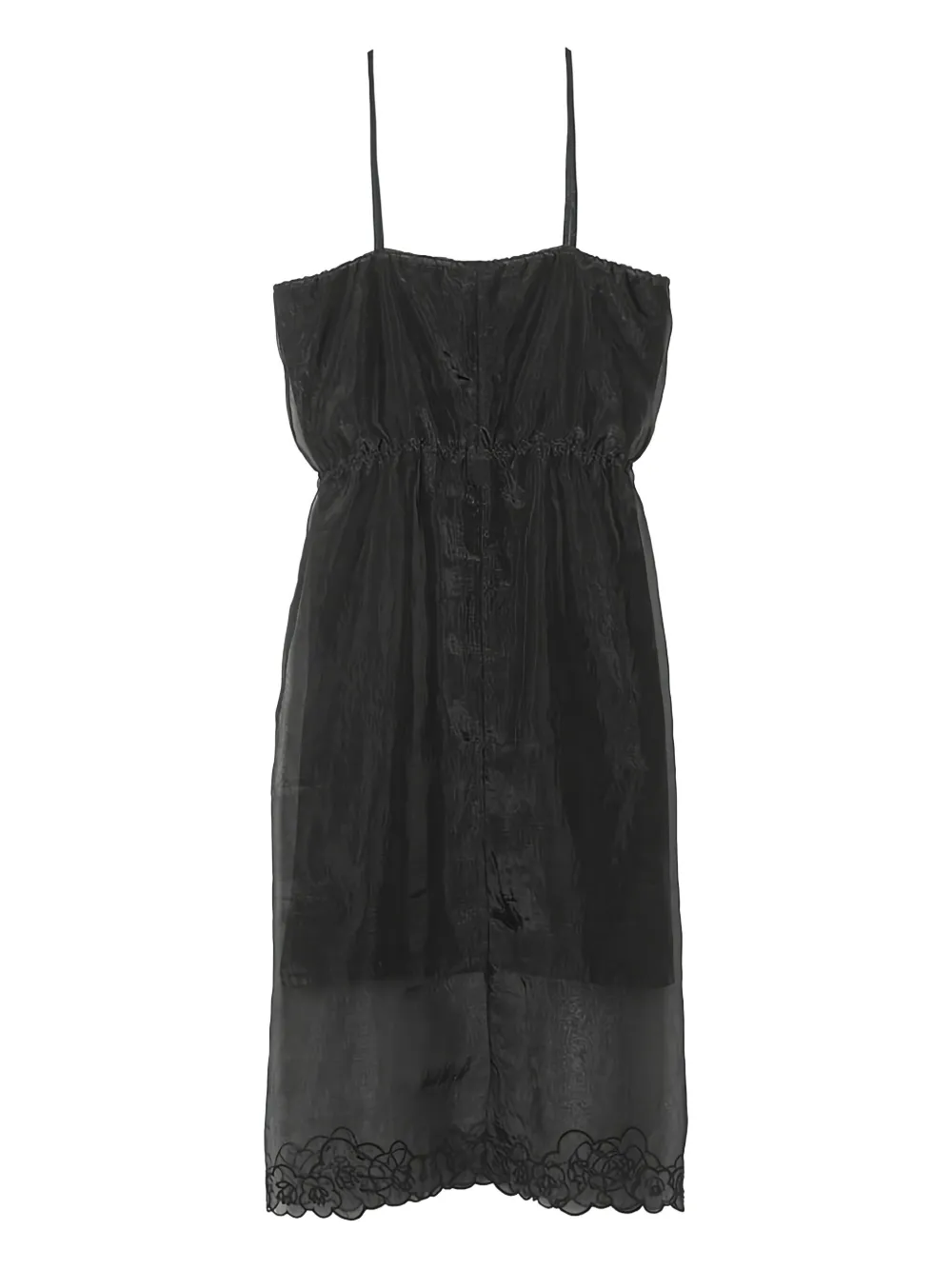 Черные тонкие бретели, завязка-кулиска, волнистый край, пуговицы, полупрозрачная отделка