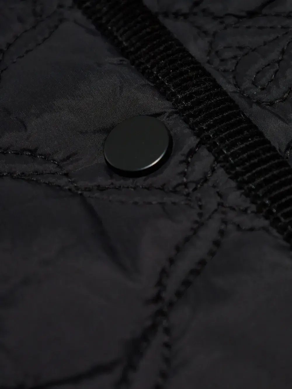 Черная стеганая куртка с бантом, застежка на пуговицы, вельветовый воротник, передние карманы