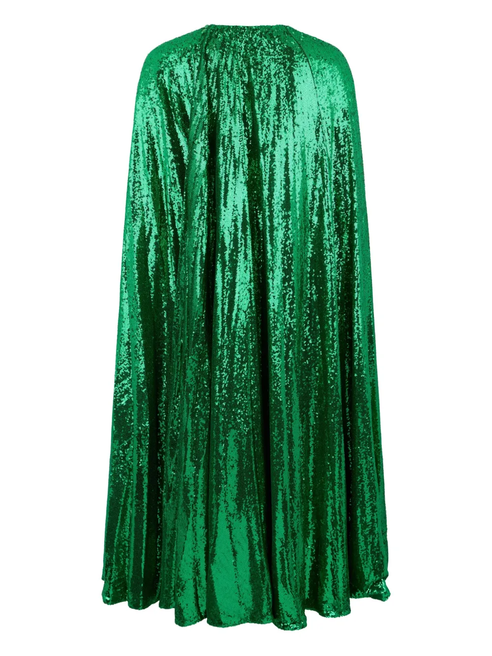 Зеленое платье без рукавов с круглым вырезом, украшенное пайетками и с деталями в виде накидки