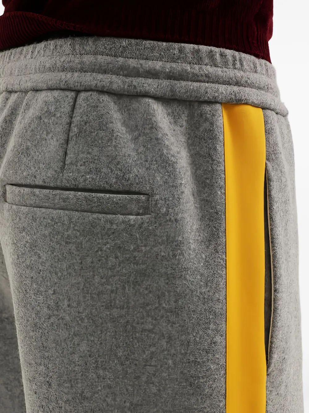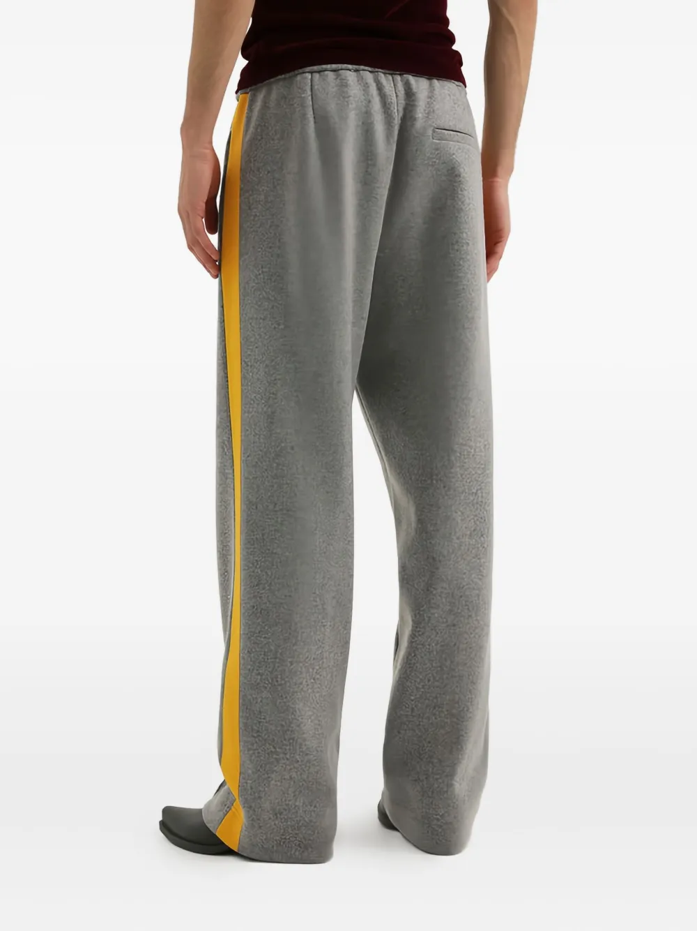 Серые брюки с боковыми полосками, эластичным поясом и задним карманом