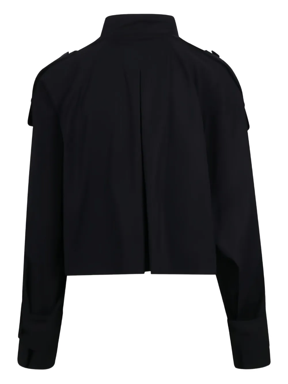 Черные эпauleты, застежка-молния, высокий воротник, манжеты на пуговицах