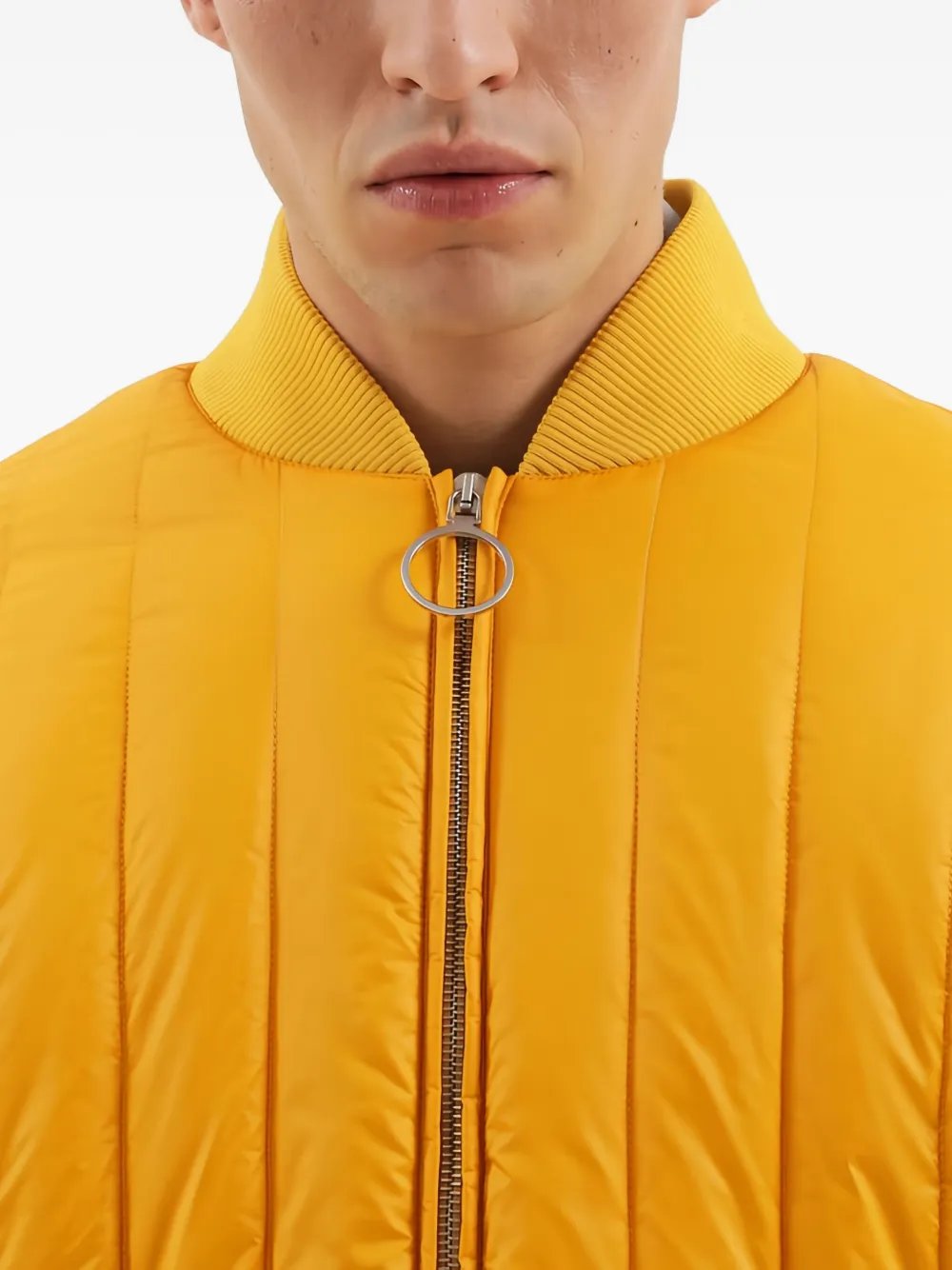 Желтый стеганый дизайн, ребристый воротник, застежка-молния, длинные рукава, однотонная строчка
