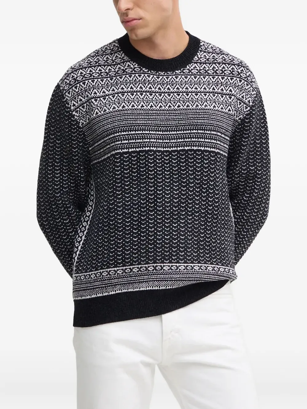 Свитер с узором и круглым вырезом Armani Exchange, черный