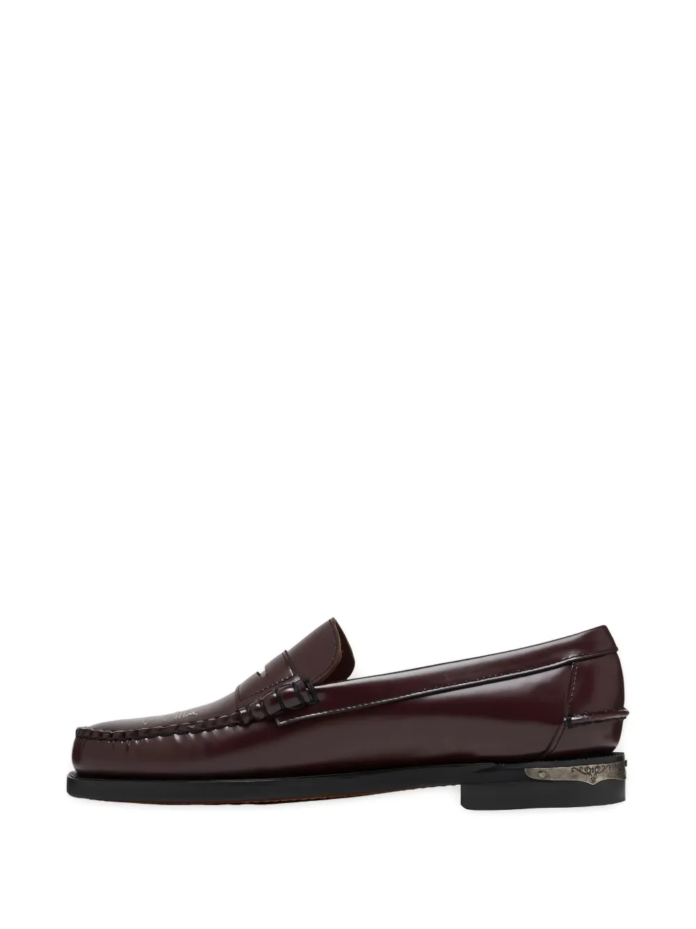 Коричнево-бордовые лоферы с вышивкой, ремешком-пенни, блочным каблуком и декоративной строчкой