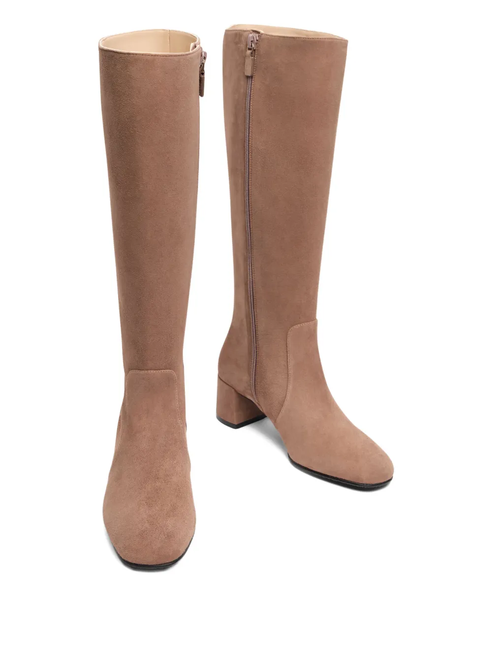 Светло-коричневые ботфорты на массивном каблуке с круглым носком и застежкой-молнией